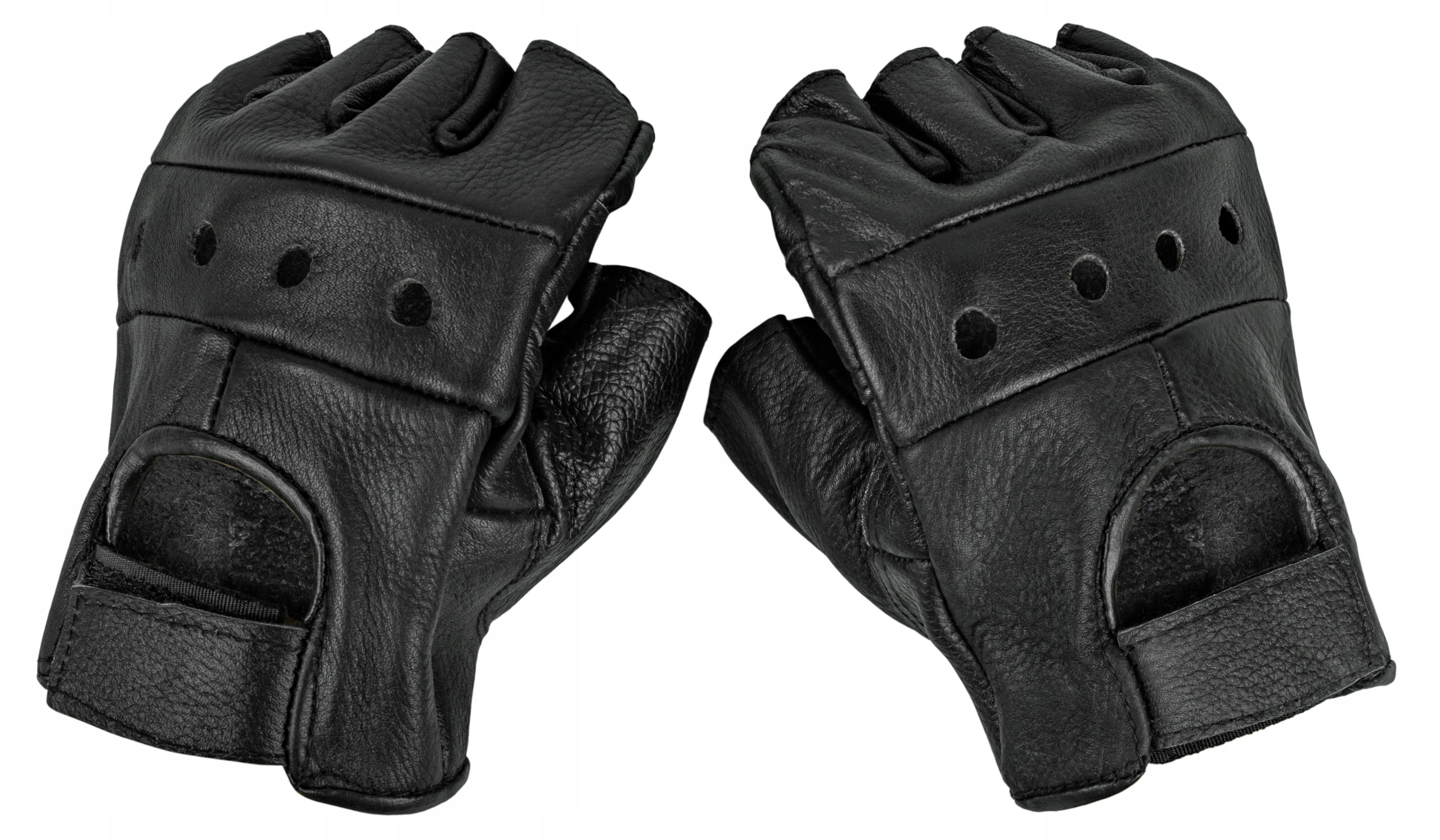 Високоякісні рукавички без пальців з коров'ячої шкіри.