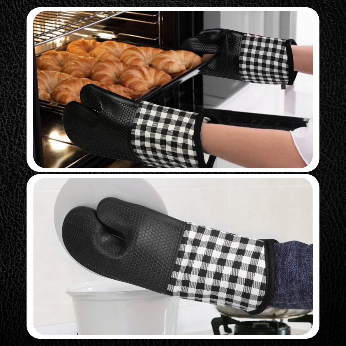 ✅ Стійкий силікон із термоізоляцією: рукавички виготовлені з високоякісного силікону, який забезпечує чудову теплоізоляцію, захищаючи ваші руки від гарячого посуду та вогню.