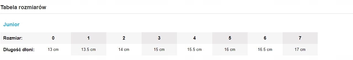 Щоб вибрати потрібний розмір рукавичок воротаря, вам слід за допомогою сантиметрової довжини руки від кінця середнього пальця до зап'ястя. Отриманий результат вимірювання слід порівняти з довжиною руки, наведеною в таблиці розмірів.