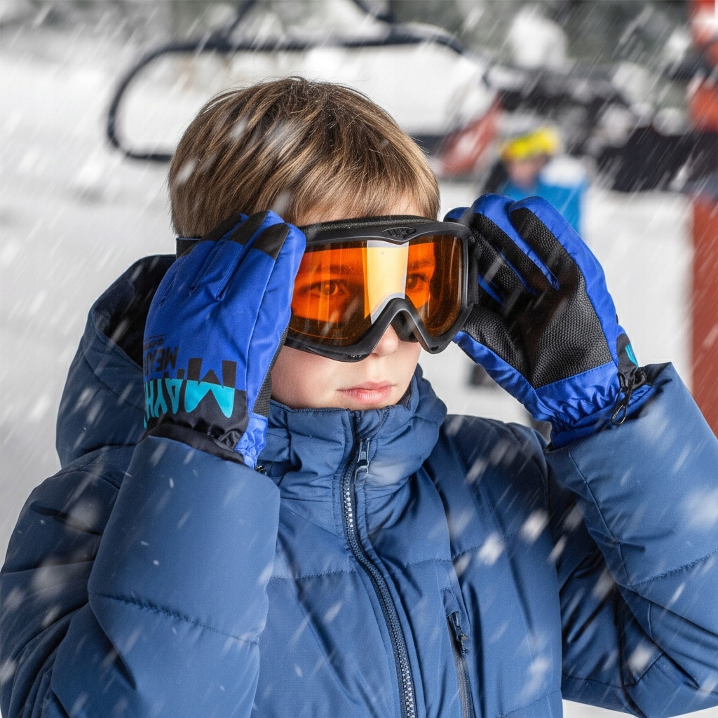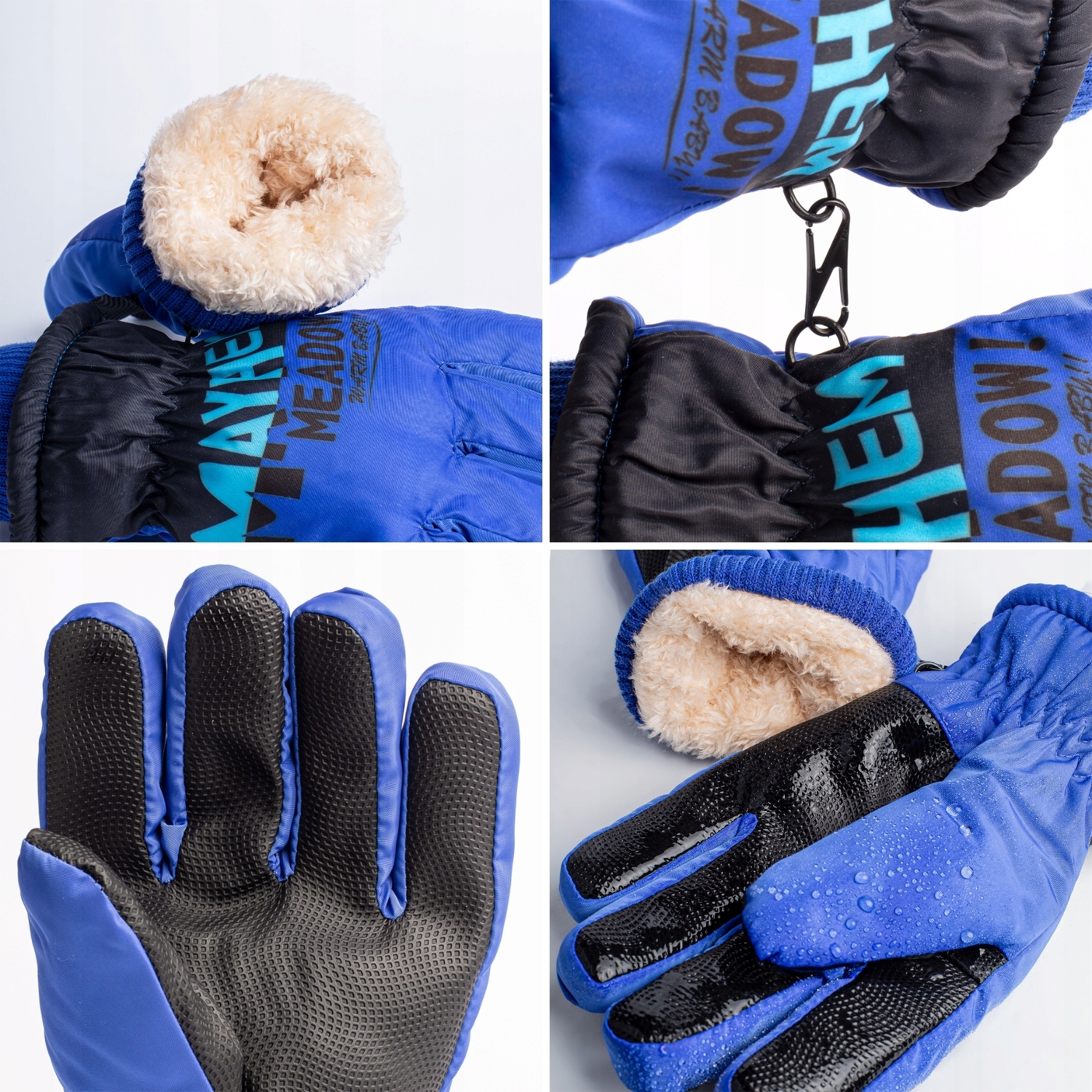 Внутрішня сторона рукавичок обшита м'яким плюшевим матеріаломзабезпечує тепло та комфорт. Чудова теплоізоляція зберігає руки в теплі, а еластичні манжети захищають від холоду та снігу, забезпечуючи кращу посадку. Ідеально підходить для зимових розваг протягом усього дня.