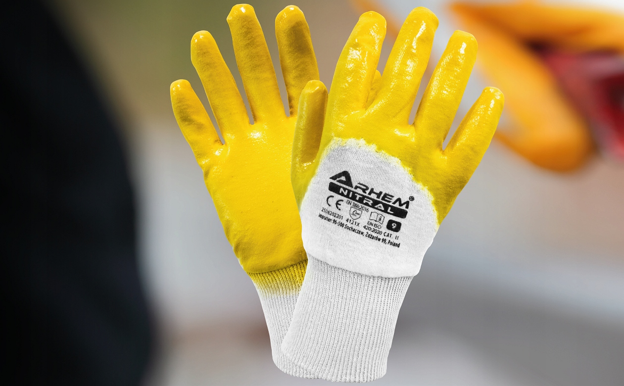 Захисні рукавички з білої бавовняної тканини, покриті жовтим нітрилом ARHEM NITRAL