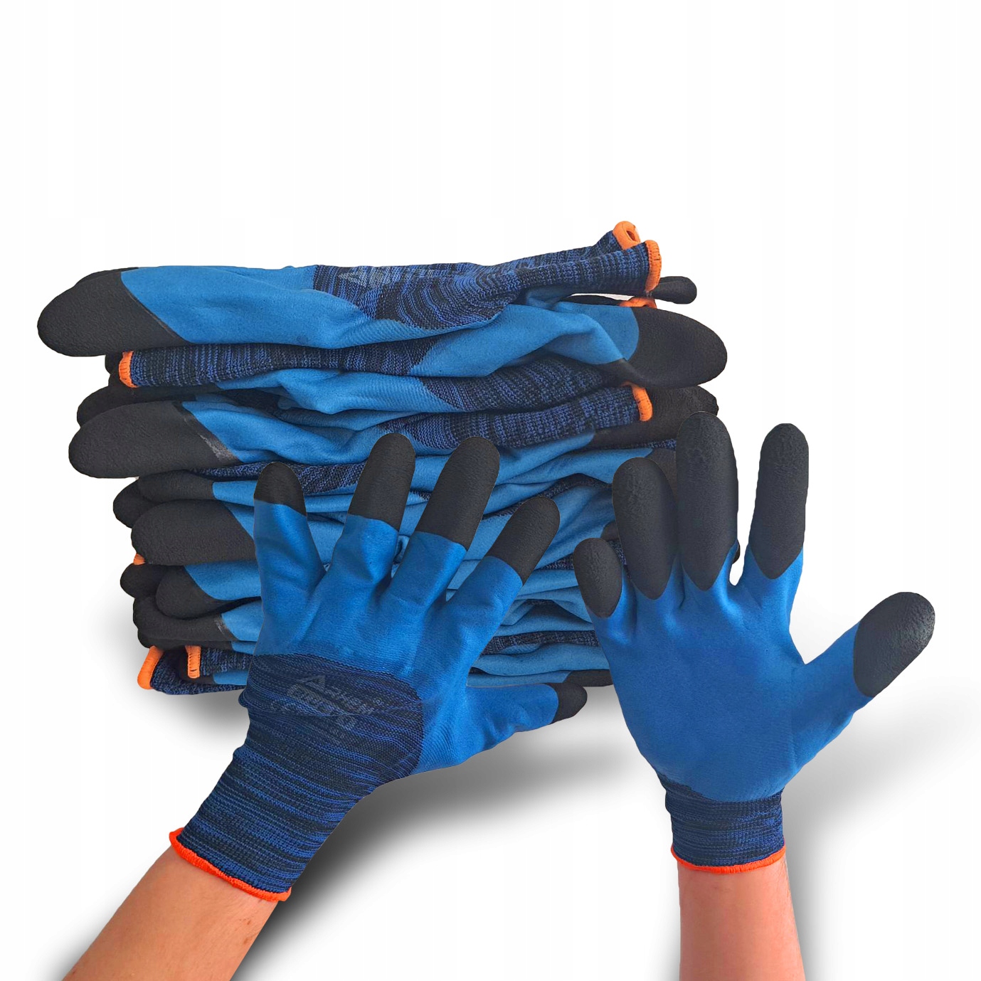 Рукавички з безшовної синьої поліефірної тканини, покритої гладким синім і чорним латексом ARHEM BLUE FIX
