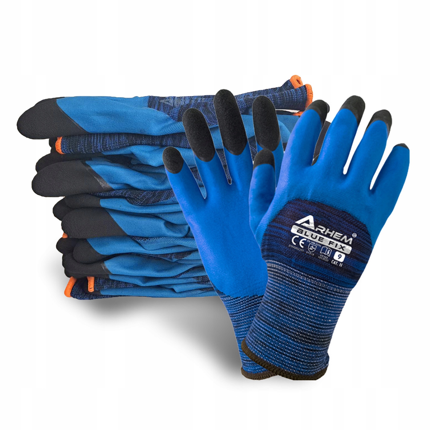Рукавички з безшовної синьої поліефірної тканини, покритої гладким синім і чорним латексом ARHEM BLUE FIX