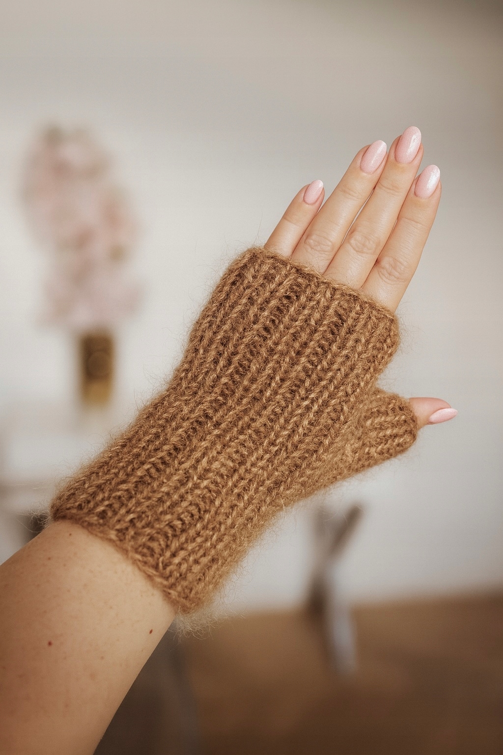 Рукавиці ручної роботи з сурі кашеміру та альпаки – розкішні, карамельні