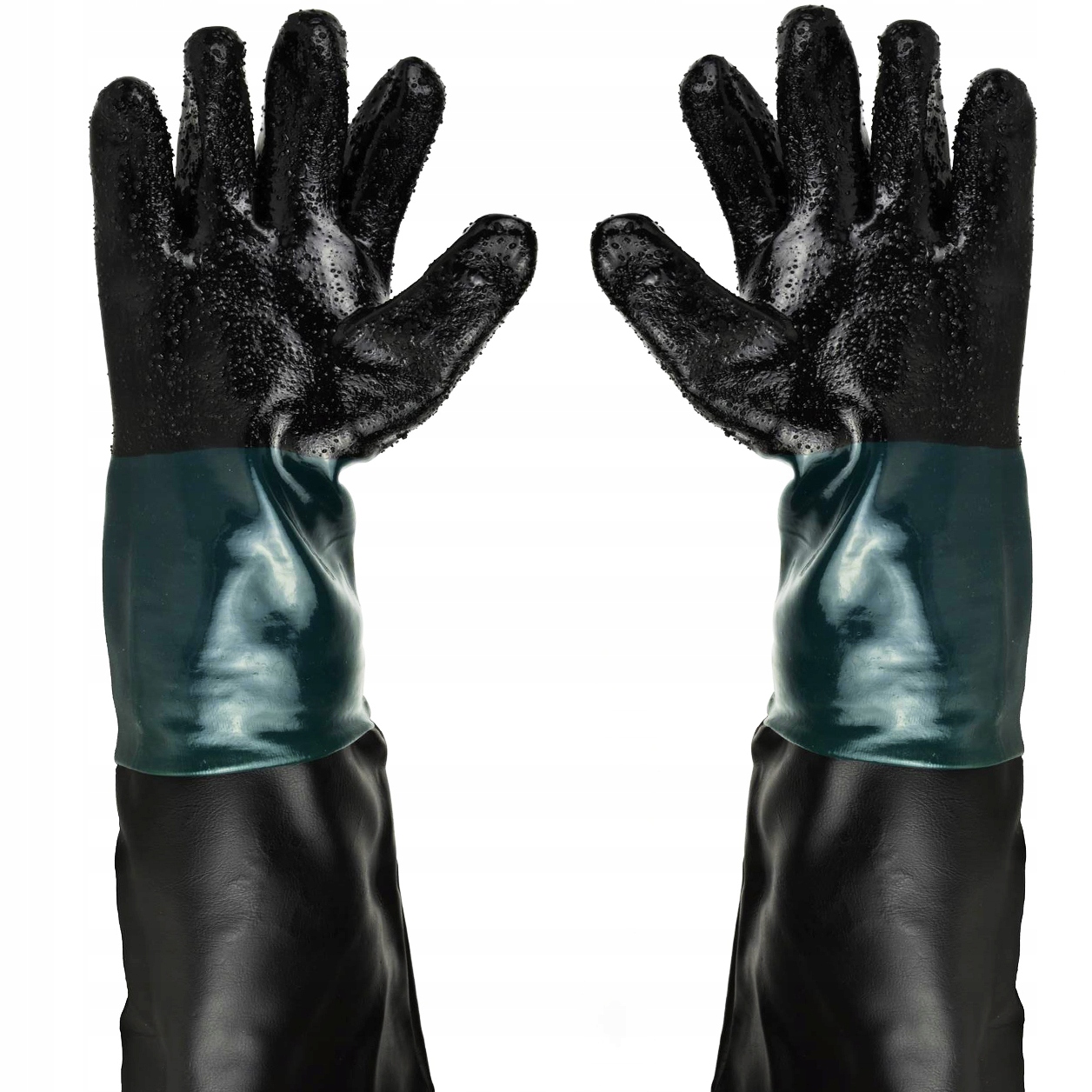 Піскоструминні рукавички з гуми, вінілу та шкірозамінника. Робоча частина з шорсткою структурою забезпечує більш надійне захоплення заготовки.