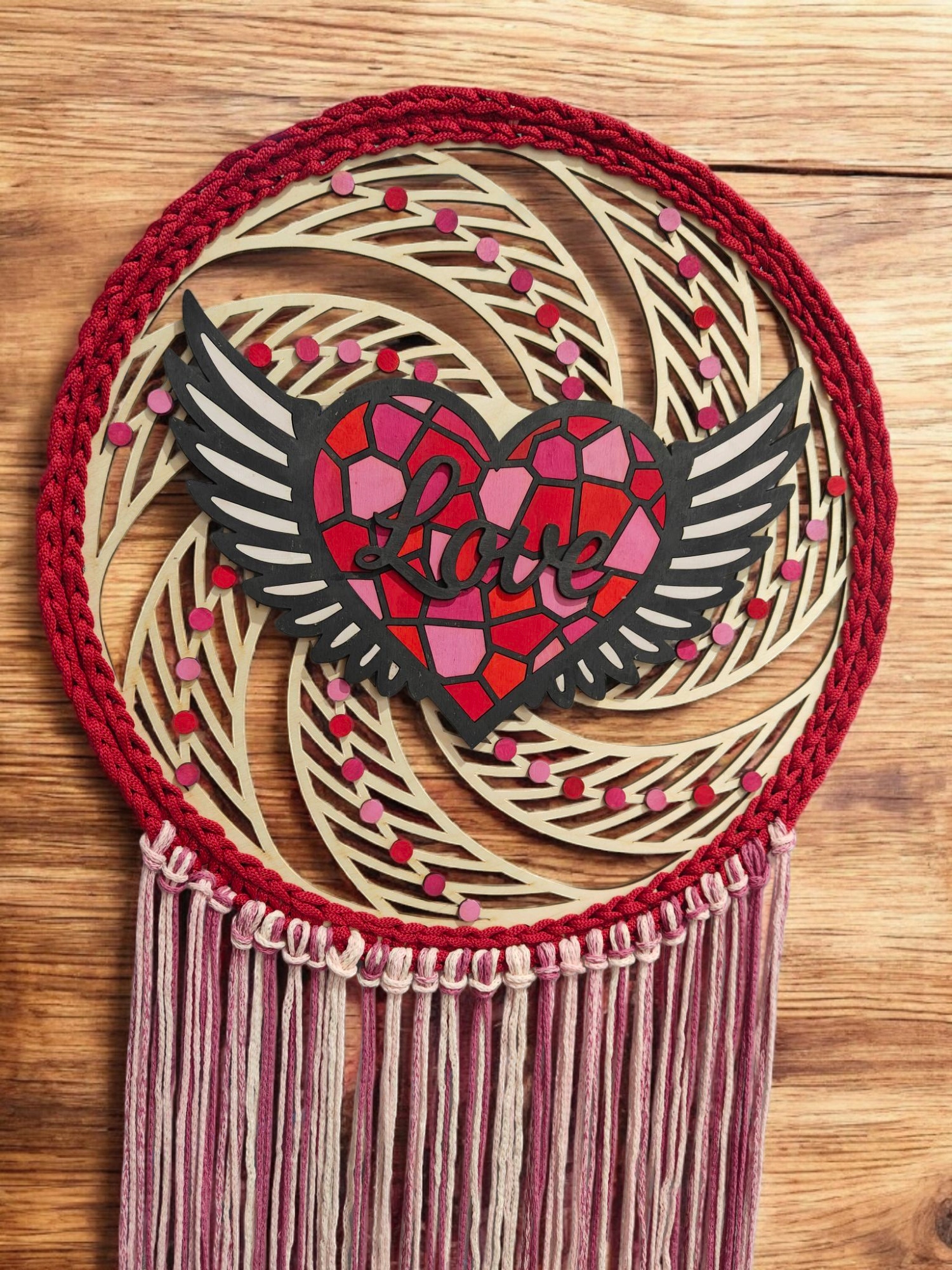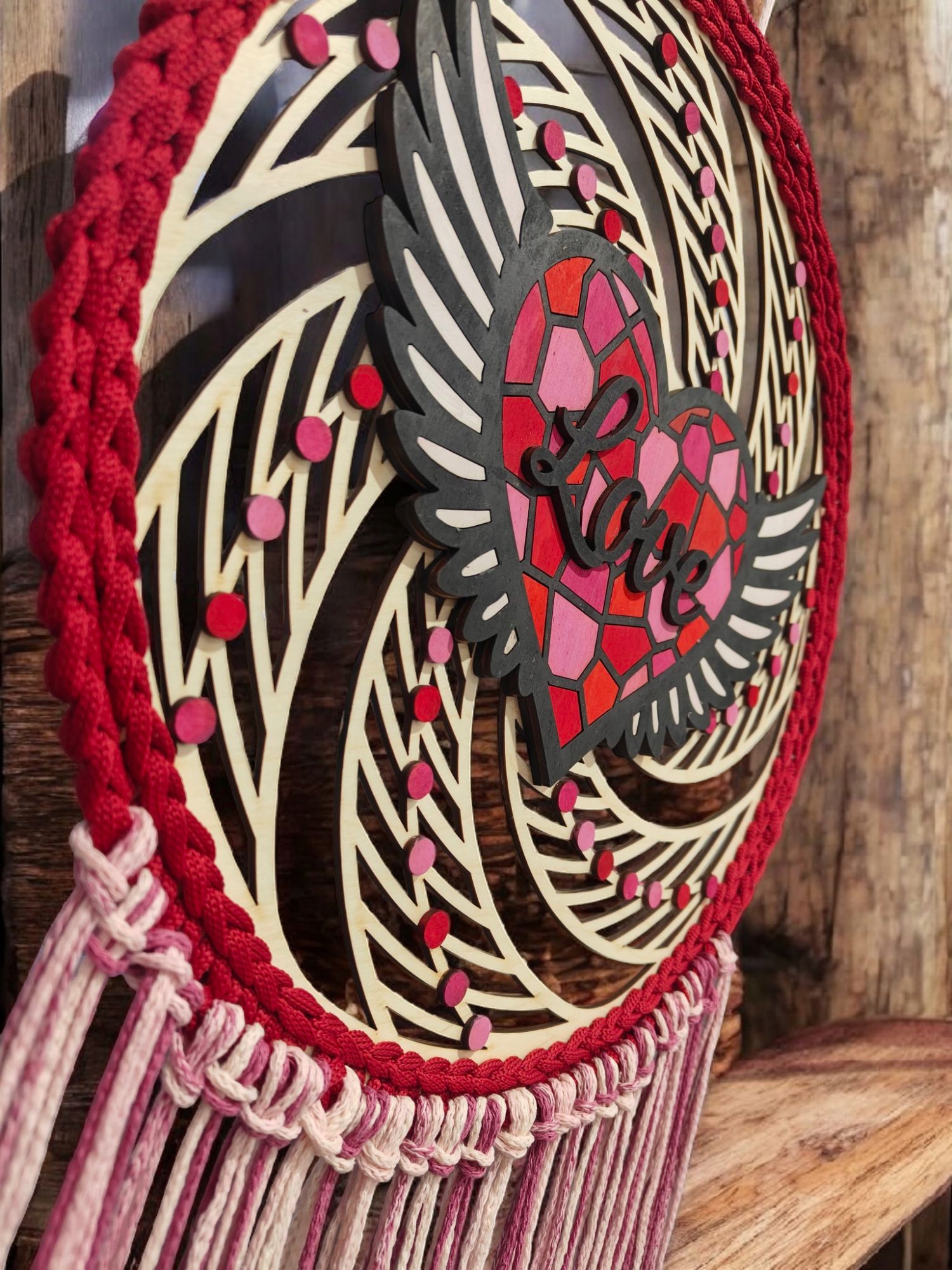 Рукоділля велика картина/ ловець снів з сердечком і додаванням макраме