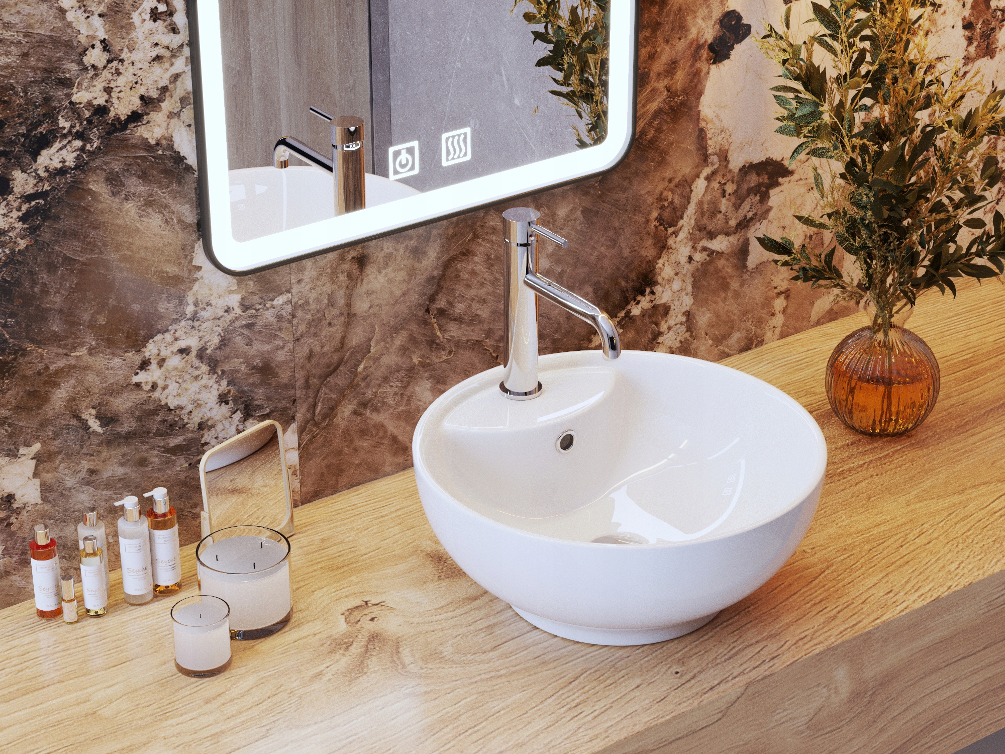 КРУГЛА БІЛА КЕРАМІЧНА РАКОВИНА ДЛЯ ВАННОЇ КІМНАТИ