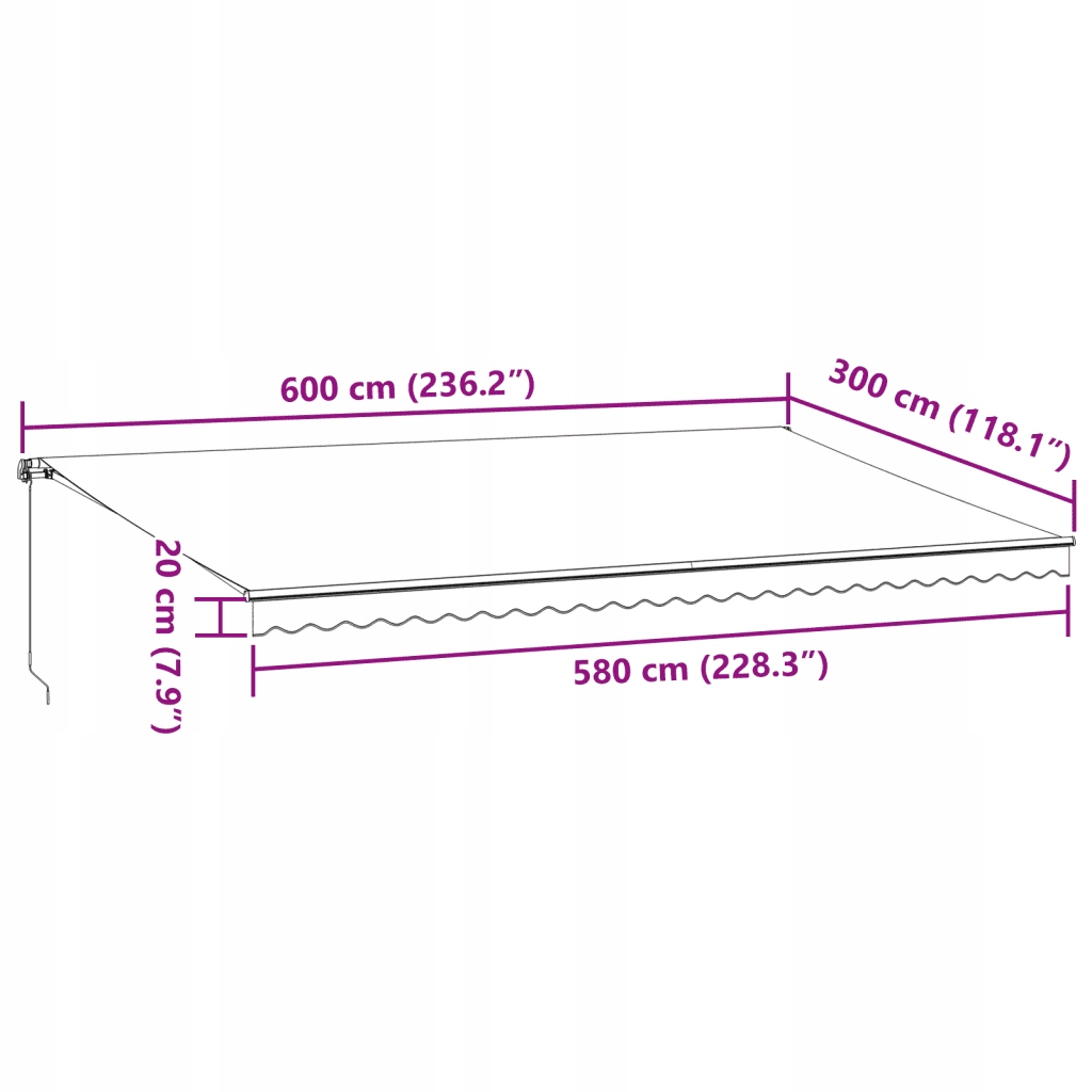 ручний тент з світлодіодом, бордовим, 600x300 см