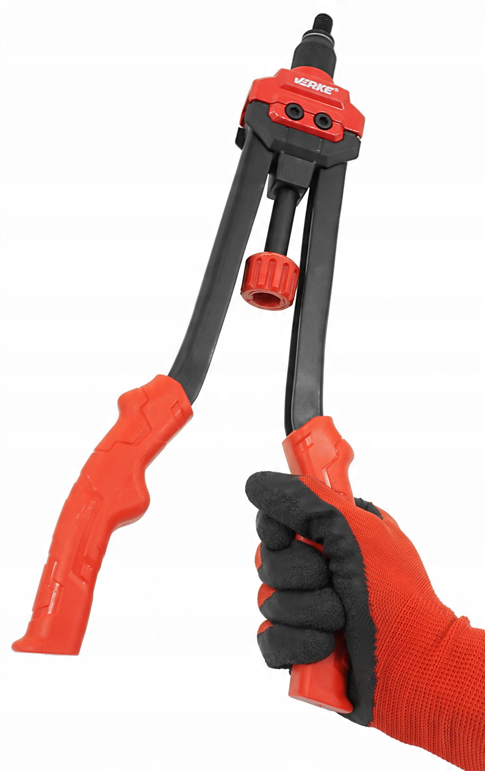 Професійний Ручний заклепочник VERKE для заклепувальних гайок M3-M12 є незамінним інструментом в механічних майстернях, сервісних центрах і саморобних роботах, де потрібно зробити міцні і точні заклепкові з'єднання з внутрішньою різьбою. Заклепувальник забезпечує стабільне кріплення елементів з можливістю вкручування додаткових болтів і шурупів, що підвищує універсальність інструменту.
