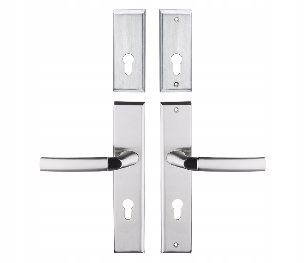 Дверні ручки на довгій пластині мають розмір пуансона, який визначає відстань від центру поворотного штифта ручки до центру отвору для ключа, циліндра чи туалетного замка. Найпопулярніший розмір на польському ринку 72 мм. Цей розмір використовують усі провідні виробники міжкімнатних дверей на польському ринку.