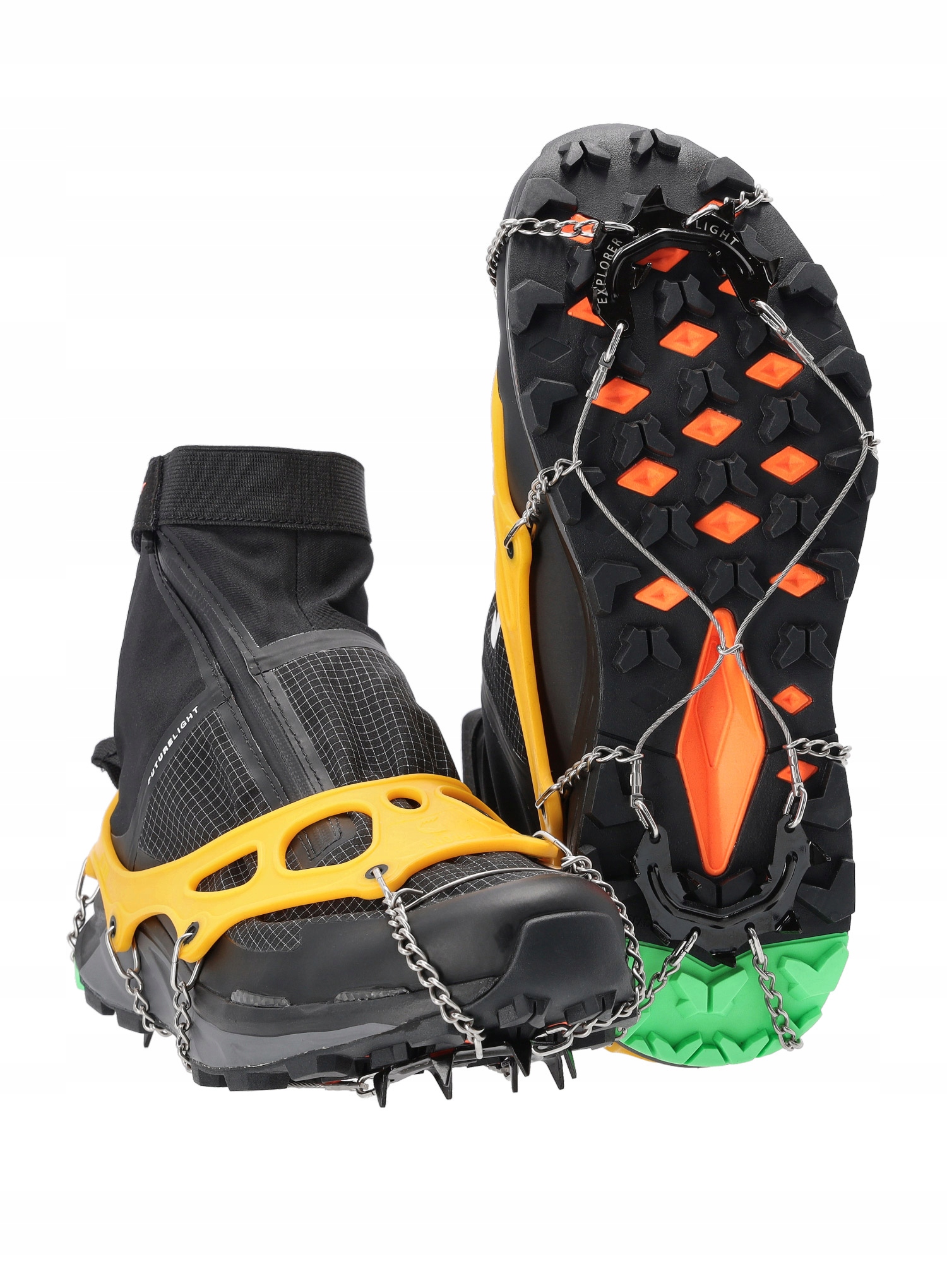 Похідні люльки Grivel Explorer добре працюватимуть на слизькій місцевості. Ви можете використовувати їх як на льоду, так і в грязі. Відповідна форма гуми ідеально адаптується практично до будь-якого взуття, а 14 сталевих зубів, покритих антикорозійним покриттям, забезпечують стабільність кожної сходинки. Весь вирізняється дуже низькою вагою від 196 г (S) до 208 г (XL). До ручок додається чохол, що закривається на блискавку, який не займе багато місця в рюкзаку та захистить аксесуари, що містяться в ньому, від можливого пошкодження.