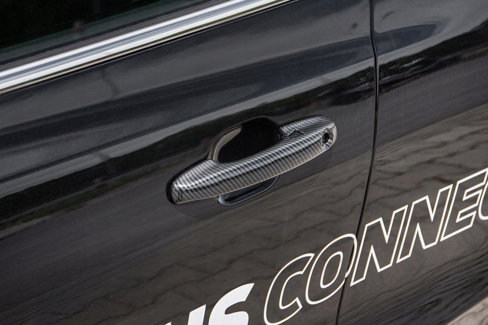 Декоративні накладки на дверні ручки є доповненням, яке доповнює стиль автомобіля ноткою спортивної елегантності. Ідеально підігнані до контурів автомобіля, вони змінюють образ дверних ручок моделі FOCUS, роблячи їх справжньою окрасою автомобіля. Виріб виготовлено з високоякісного ABS пластику, що імітує карбон.
