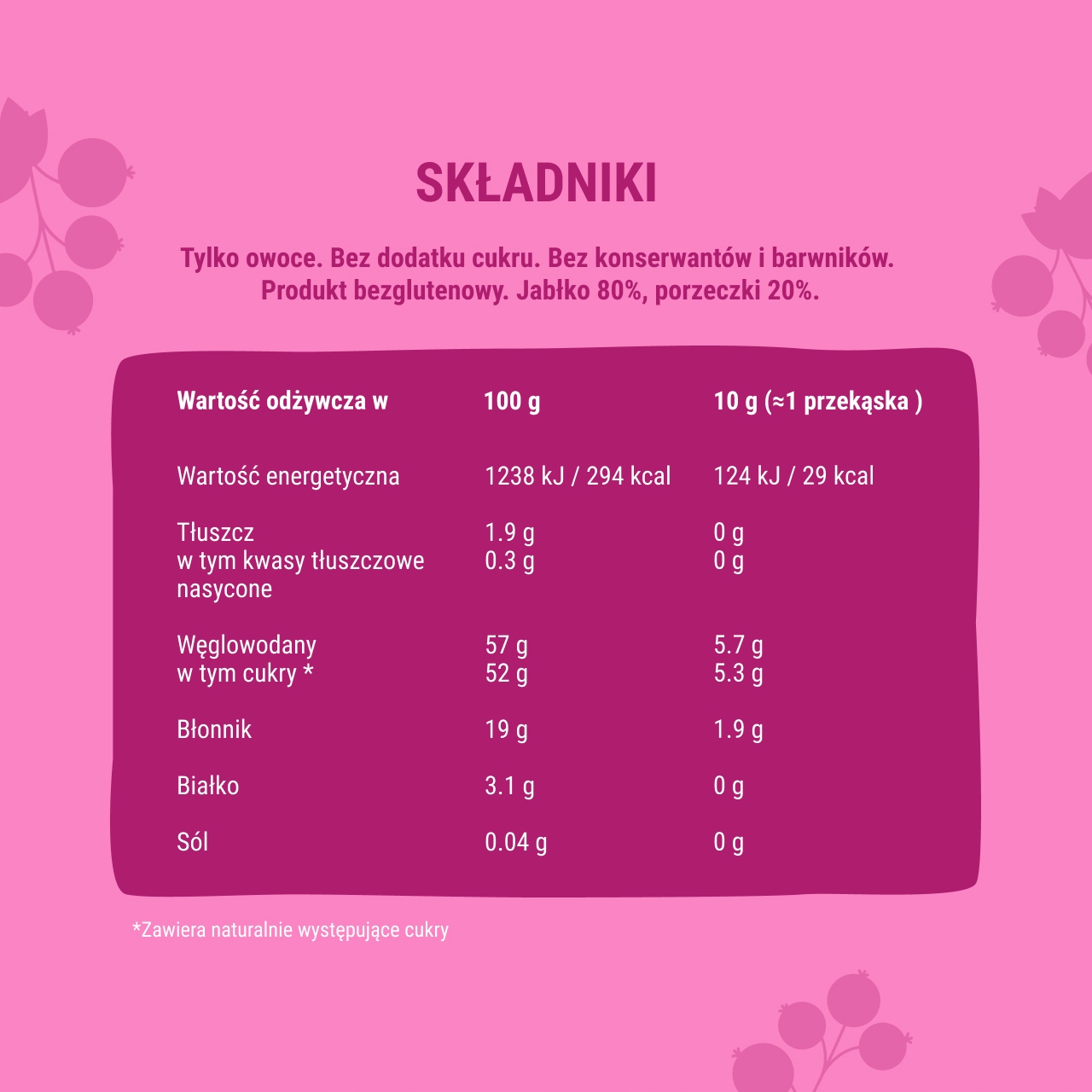 - Чистий склад. Роли мають 100% натуральний склад. Це просто фрукти і нічого більше! Вони завжди виготовляються без додавання цукру, консервантів і барвників. Вони не містять глютену та ГМО.