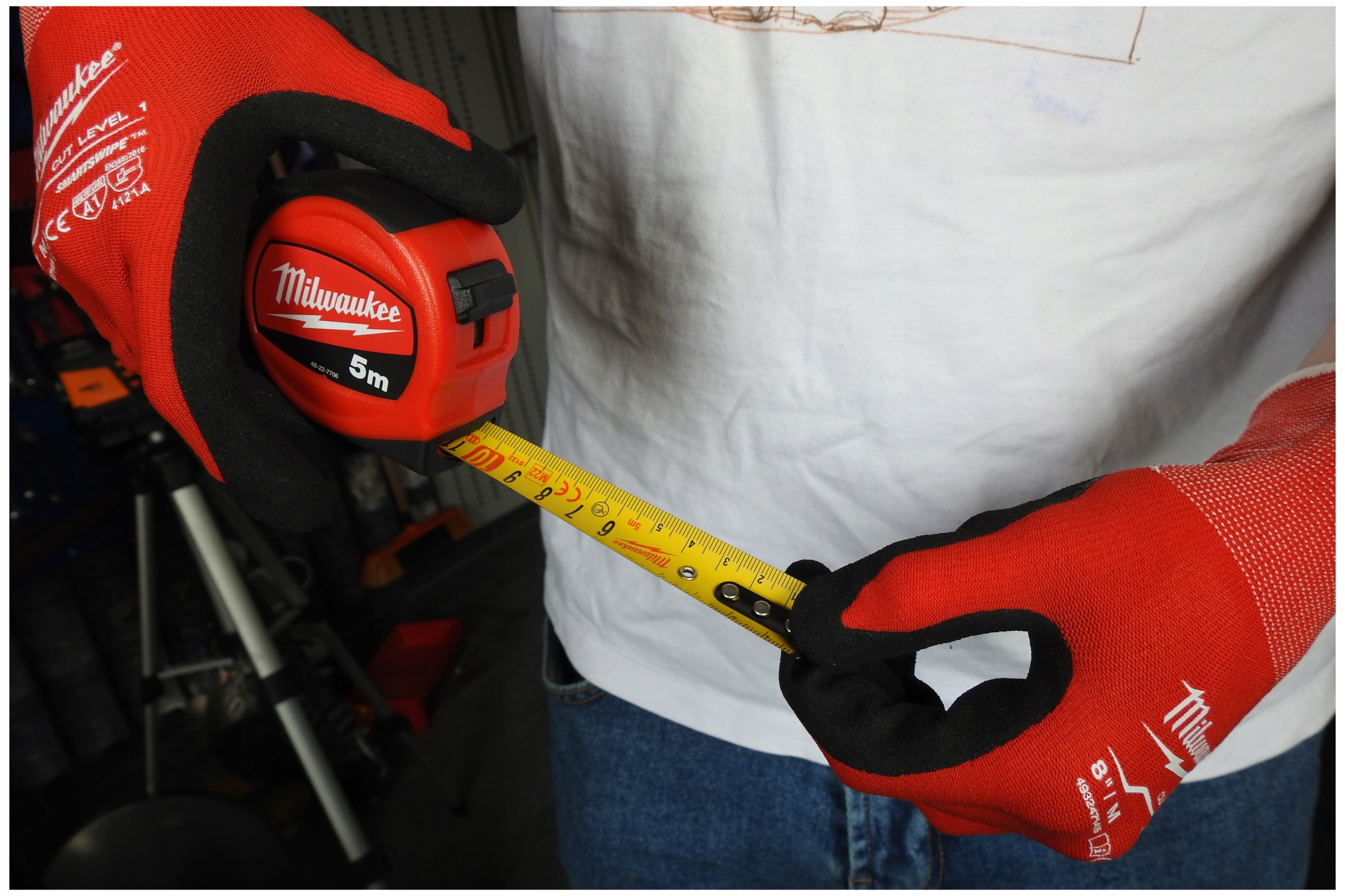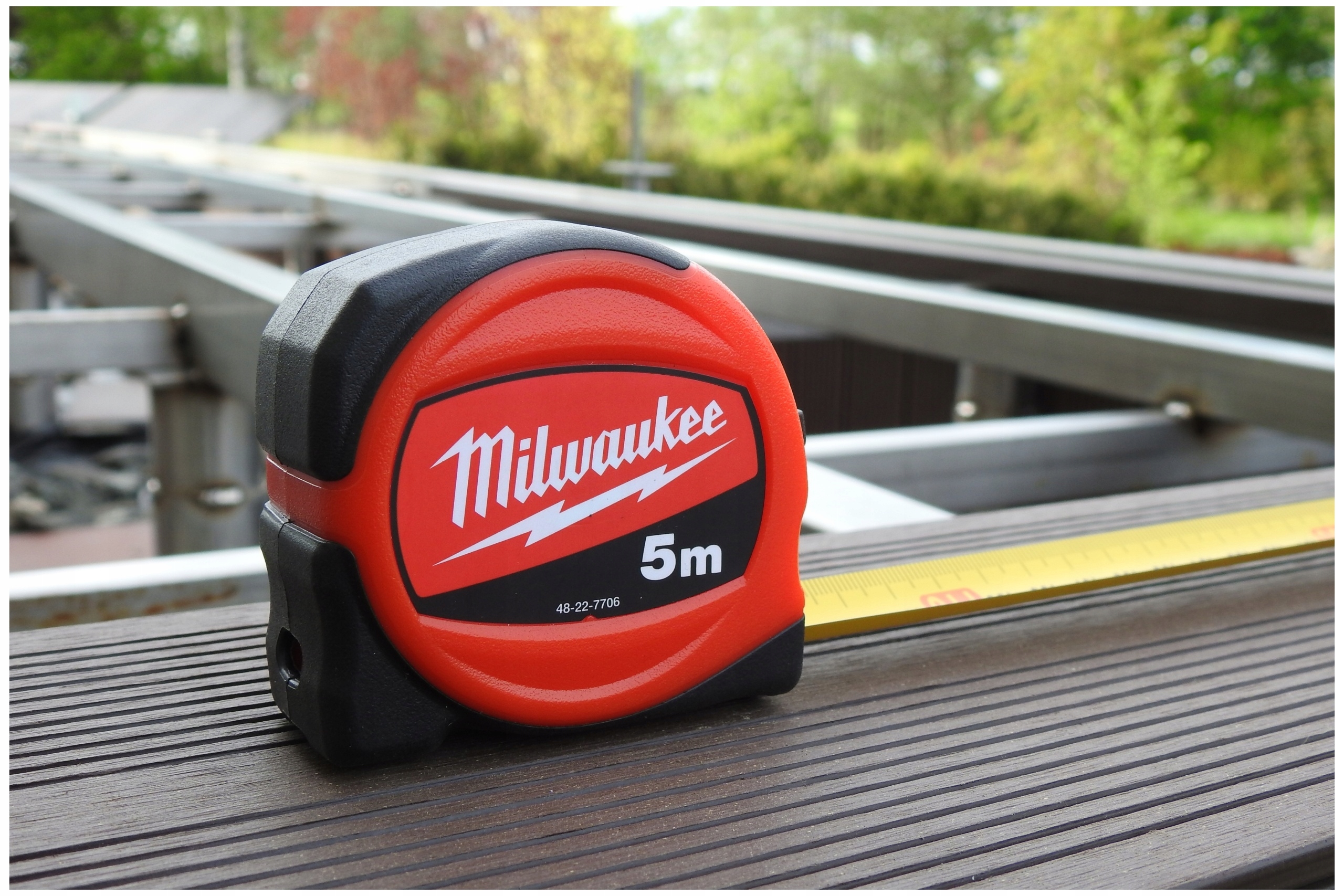 Рулетка Milwaukee завдяки широкій стрічкі (25 мм) стає набагато стійкішою до перегинів під час розтягування.