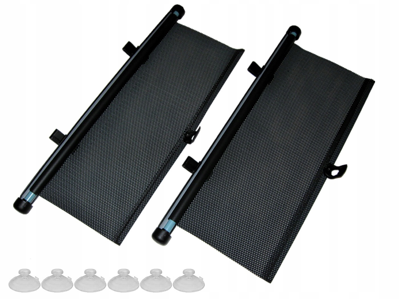 Набір із двох високоякісних сонцезахисних жалюзі — виготовлених із міцного ПВХ-матеріалу — призначених для встановлення на бокових або задніх вікнах.