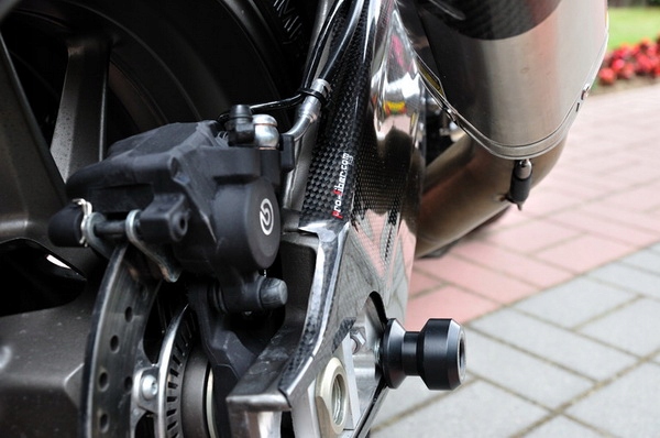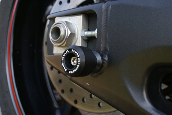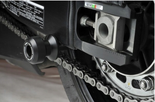 Вони призначені для встановлення в заводські отвори заднього поворотного важеля, їх встановлення відбувається швидко. Вони виконують дві функції: мінімізують пошкодження поворотного важеля і служать адаптерами для підйому мотоцикла домкратом. Їх вражаючий дизайн змушує нас рекомендувати їх як елементи тюнінгу з пластику.