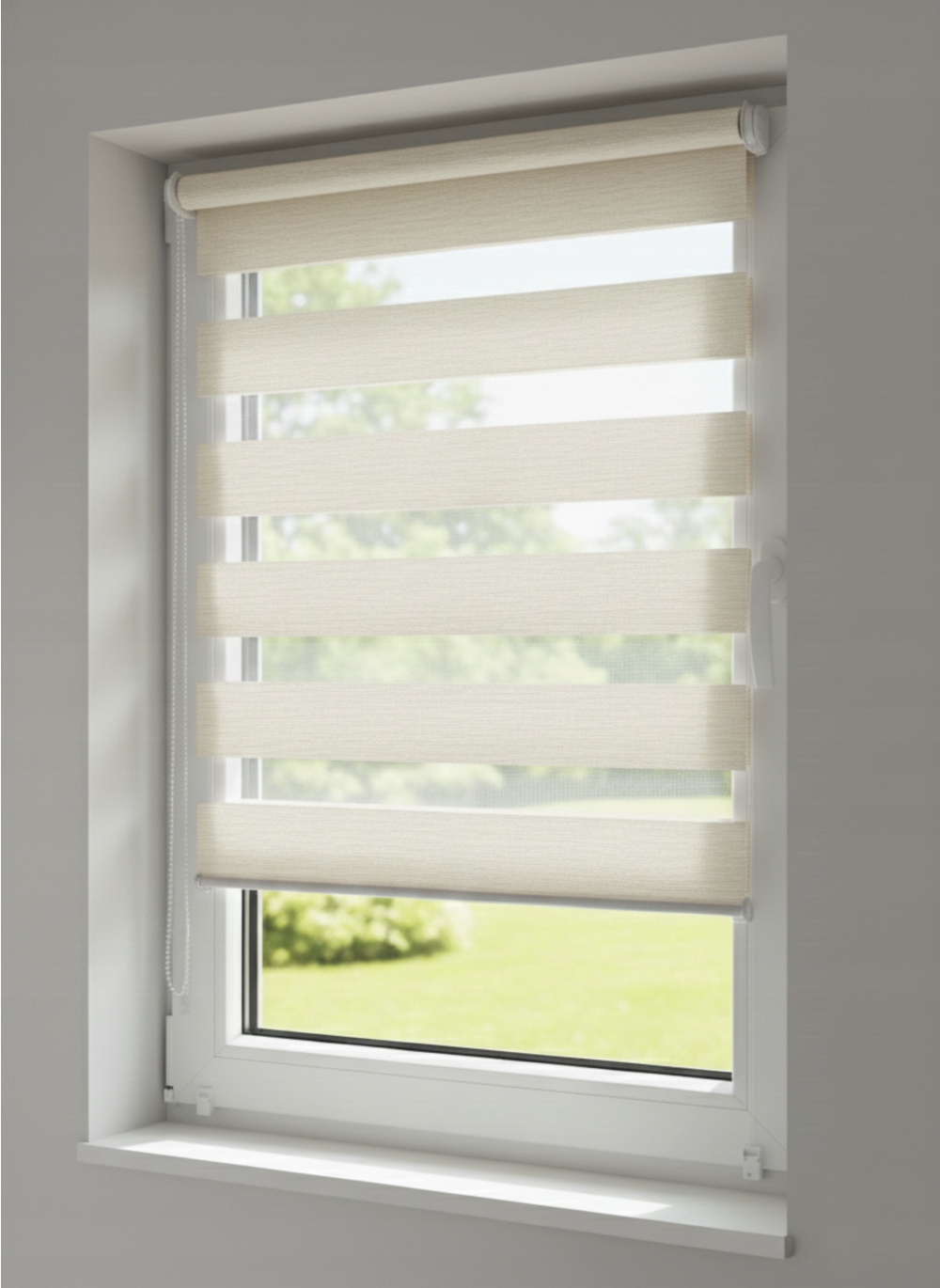Ви купуєте рулонну штору «День-Ніч» 17 мм на індивідуальний розмір і в обраному кольорі тканини.