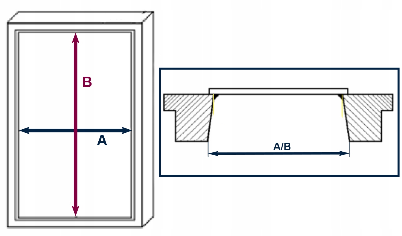 Щоб ми підігнали рулонну штору до вашого вікна, виміряйте ширину (A) і висоту (B) скляної ніші в найширшому місці, тобто на краю (як у графічний). Не вимірювайте скло!