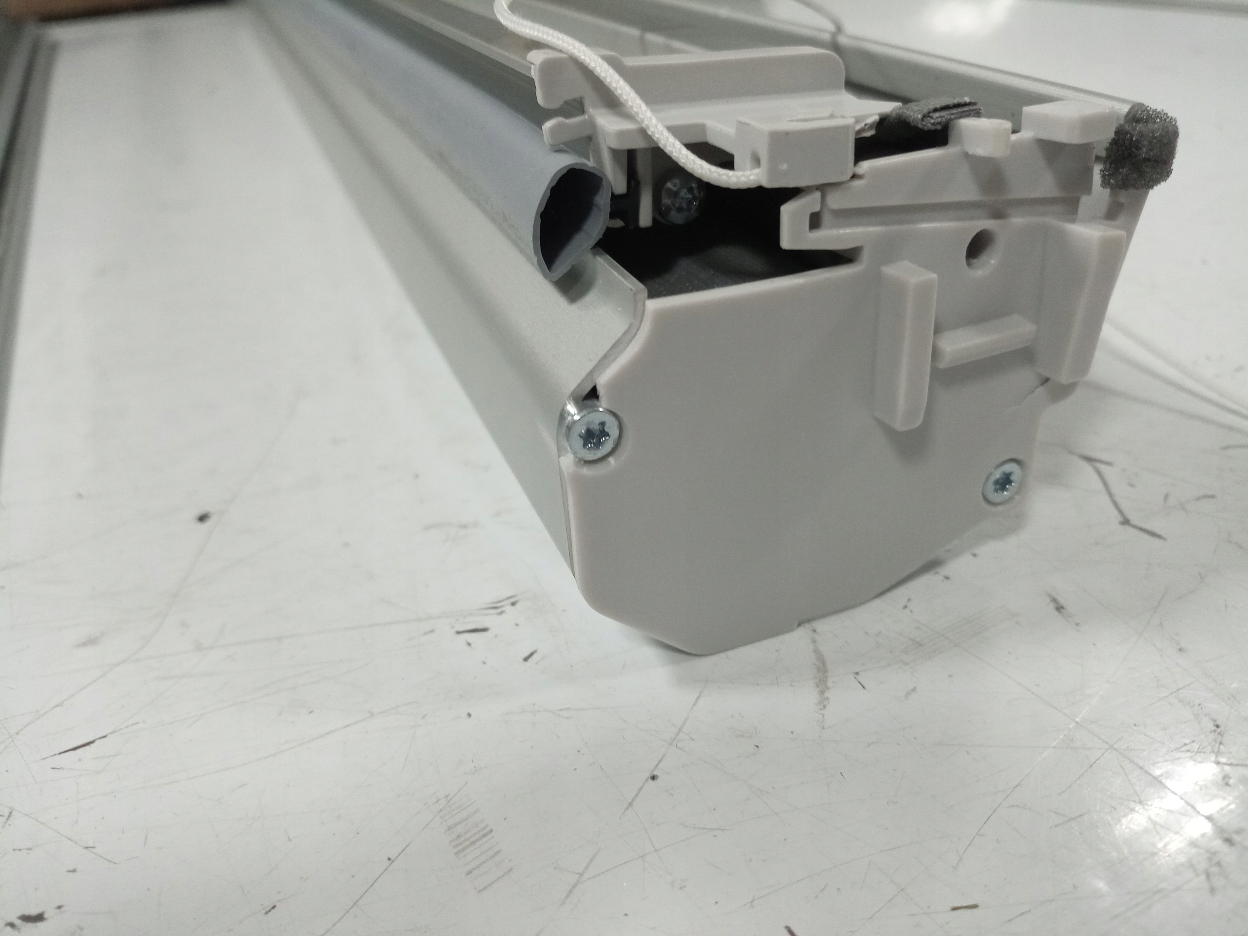 Сучасний дизайн: стильне поєднання шторки люка з білої тканини та матових сріблястих напрямних ідеально вписується в будь-який стиль інтер’єру.