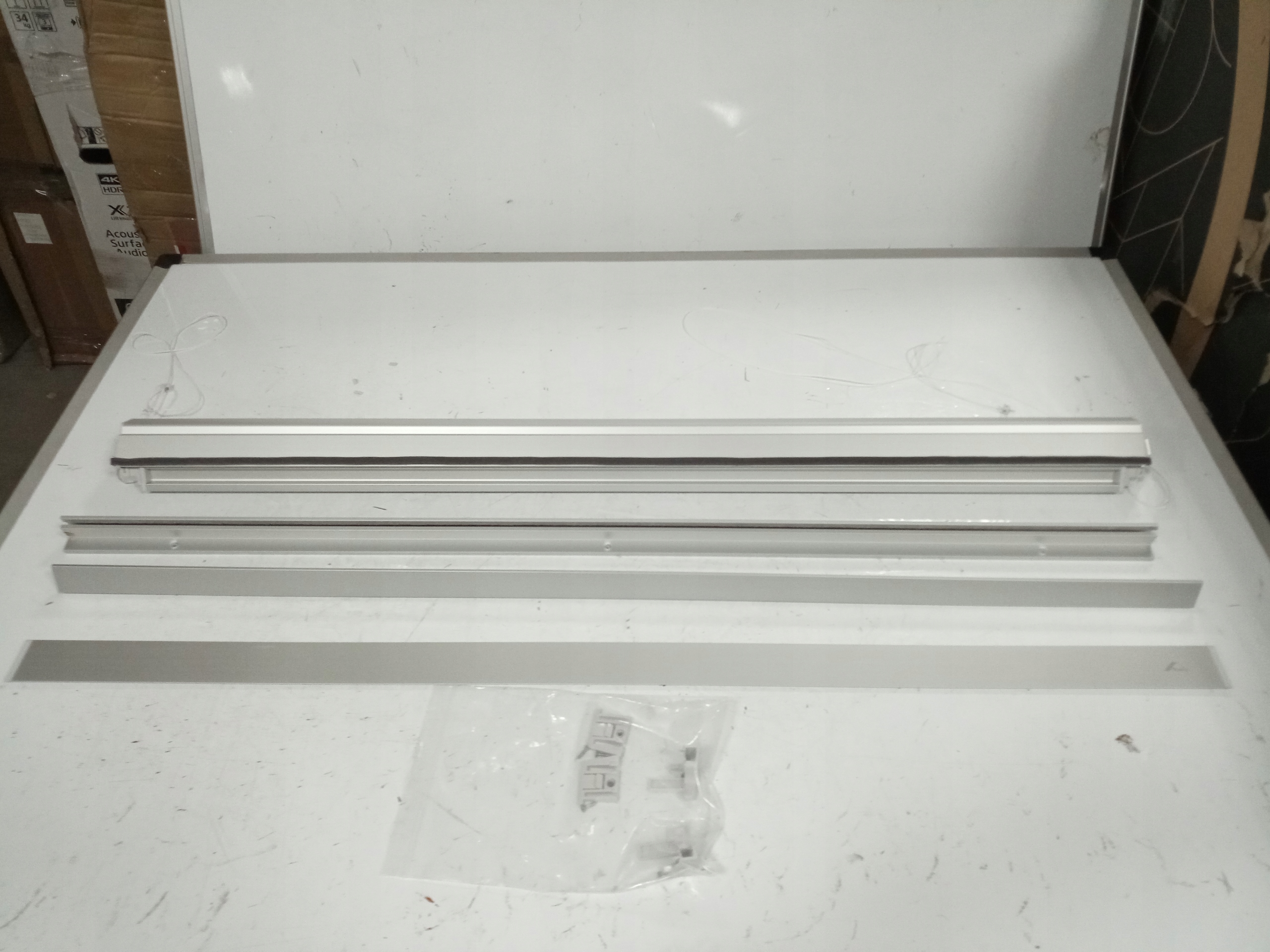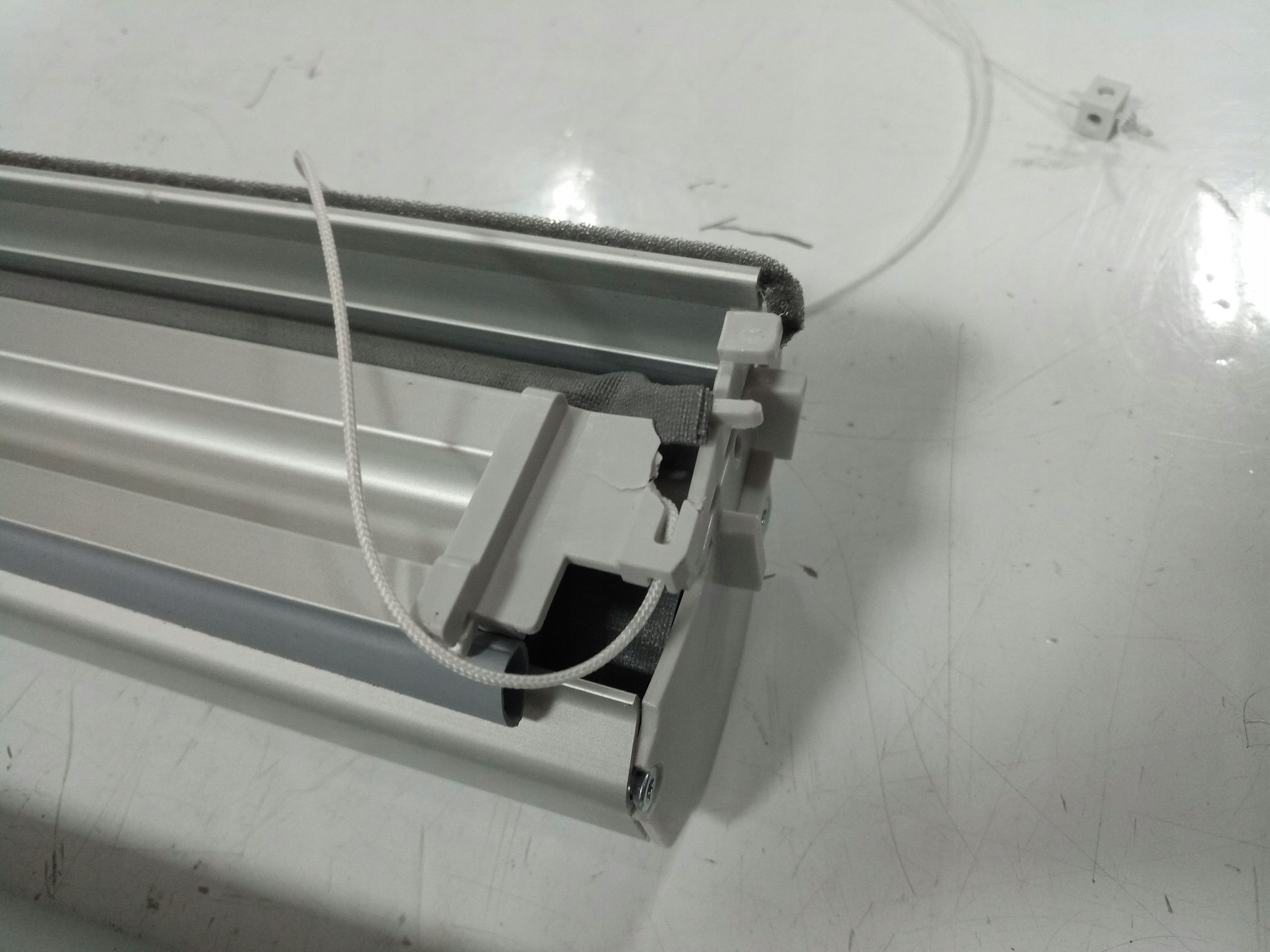 Товар б/у, рама має невеликі пошкодження (тріснутий пластик), на рулонній шторі є маленька дірка по краю від пластику, який випав.