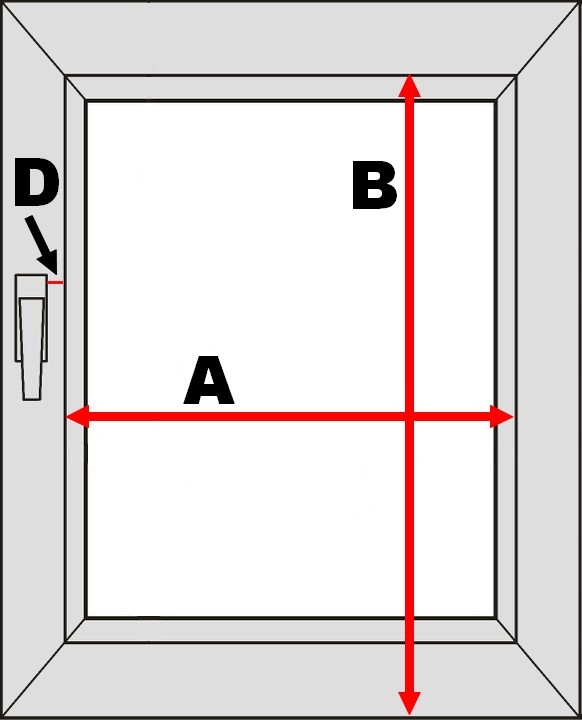 D - відстань між ручкою та штапиком (цей розмір необхідний, якщо штапик не прямокутний і не може бути приклеєний до направляючого штапика).