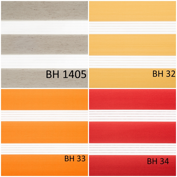 Тканини для рулонних штор виготовлені зі 100% поліестеру, за винятком матеріалів BH 08, BH 1401, BH1402, BH1405, BH1406, які мають льон.