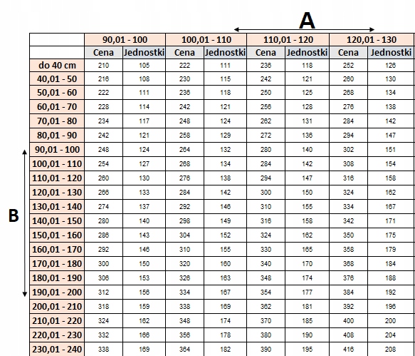 Приклад для плісе розміром: 50 см x 110,1 см (84 шт., згідно з таблицею нижче)