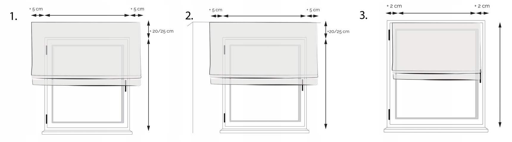 - Щоб отримати правильну ширину рулонної штори, до ширини віконної ніші слід додати щонайменше 5 сантиметрів з кожного боку. < /li>