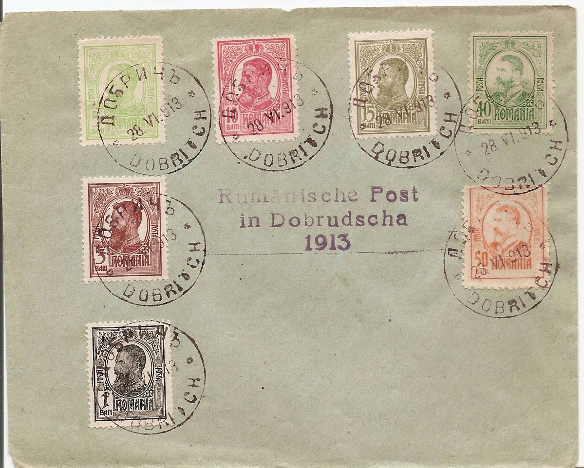 RUMUNIA ROMANIA -koperta -DOBRUDŻA -stemple 1913 rok znaczki