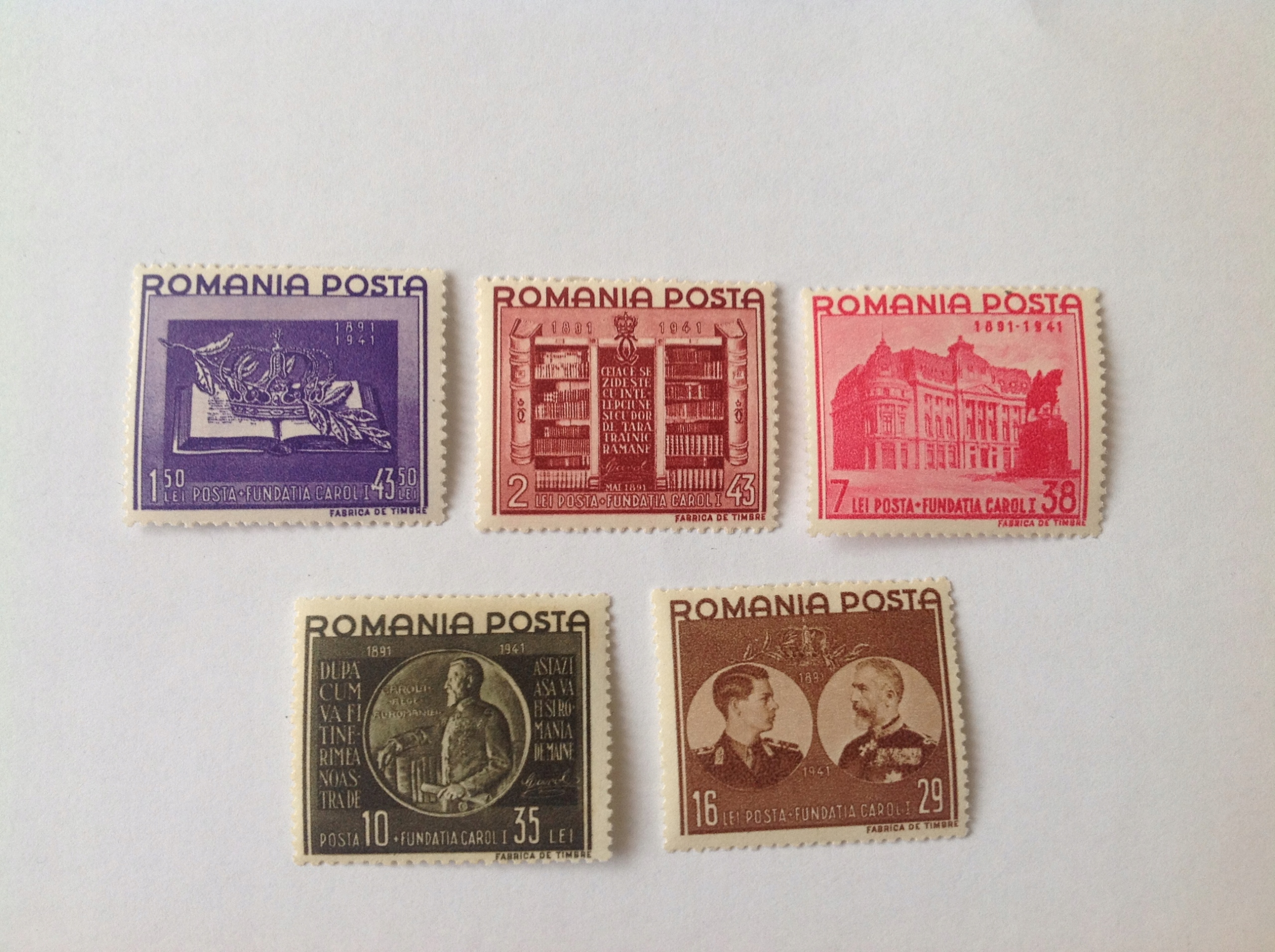 RUMUNIA SERIA 5 ZNACZKÓW CZYSTYCH Z 1941 ROKU