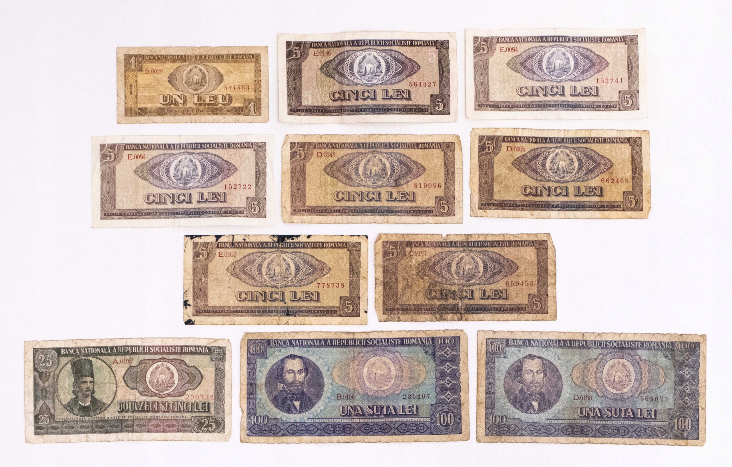 Набір включає: 2 x 100 лей, 25 лей, 7 x 5 лей 1952 року, 1 lea 1966.