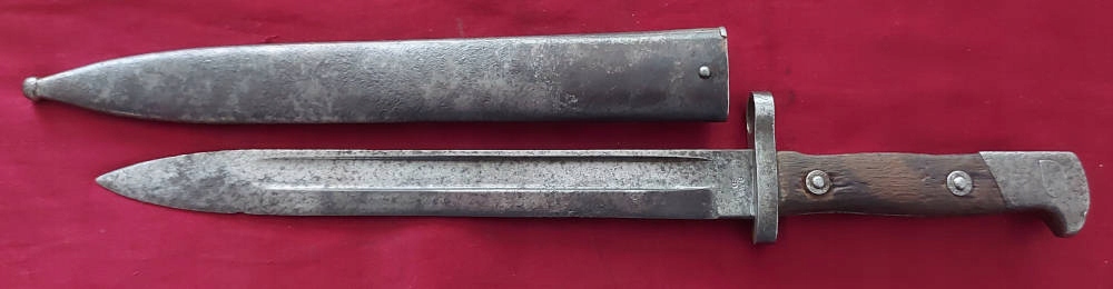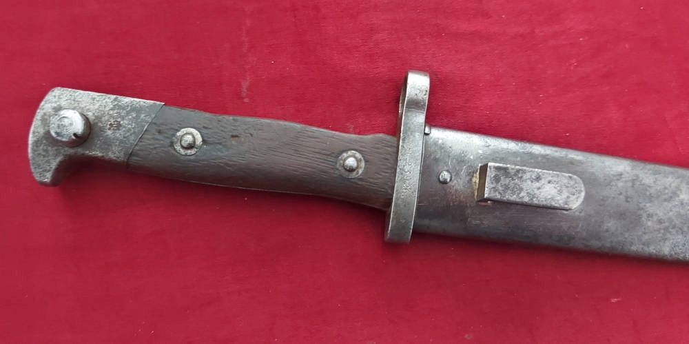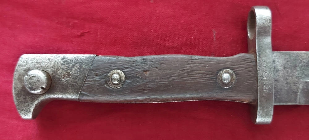предметом продажу є румунський багонет WZ. 1893 р. Для Маннліхера. Нефарбоване лезо, заточене в епоху. На порозі леза знак виробника oewg . На номер JELC .n.23926. (перший позначок розмитий). Румунії Герб румунії вдарили по голові. Обшивка ручки дерев’яна, оригінальна. Замок Bayonet функціональний.