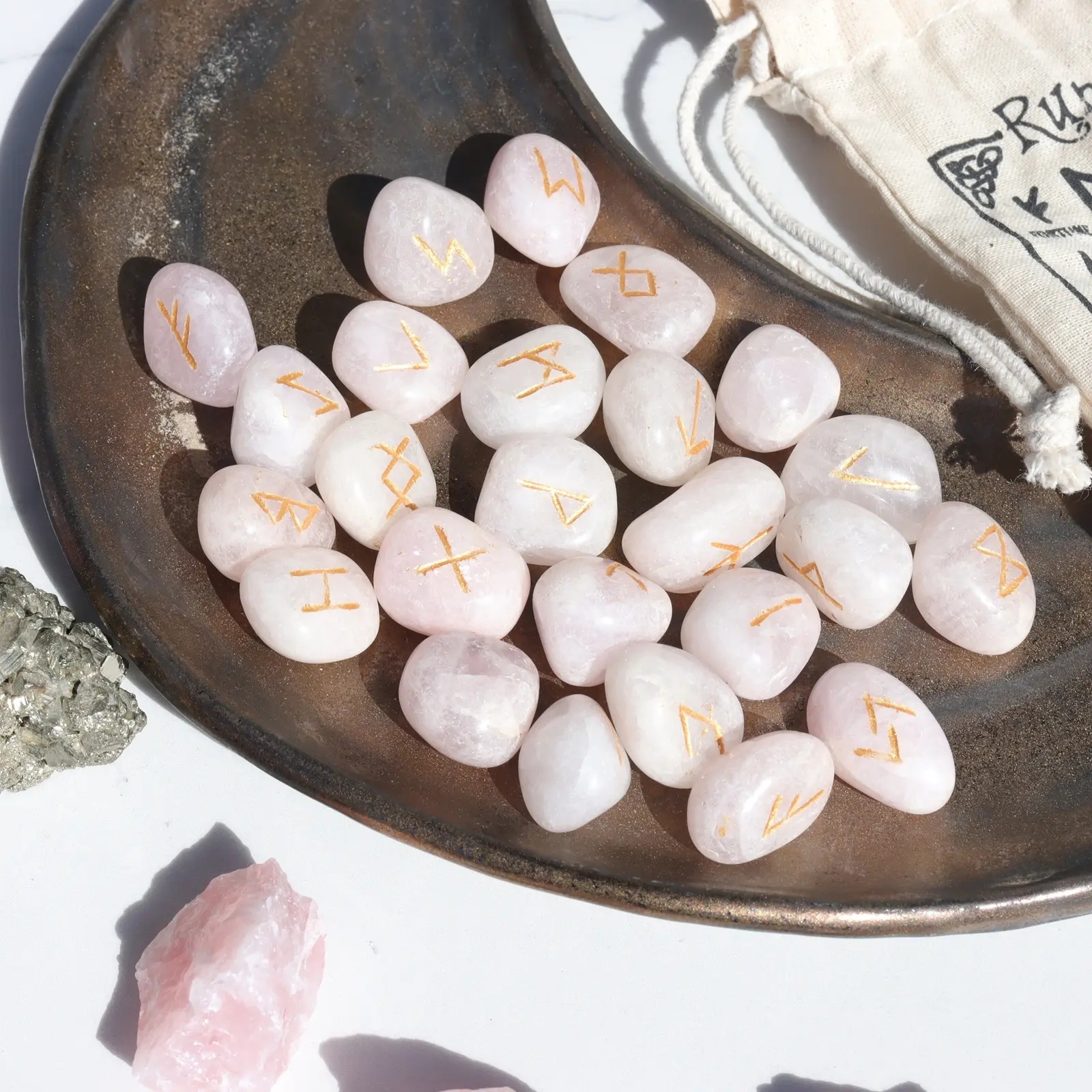 Рунічний алфавіт, набір рун з рожевого кварцу з 25 каменів