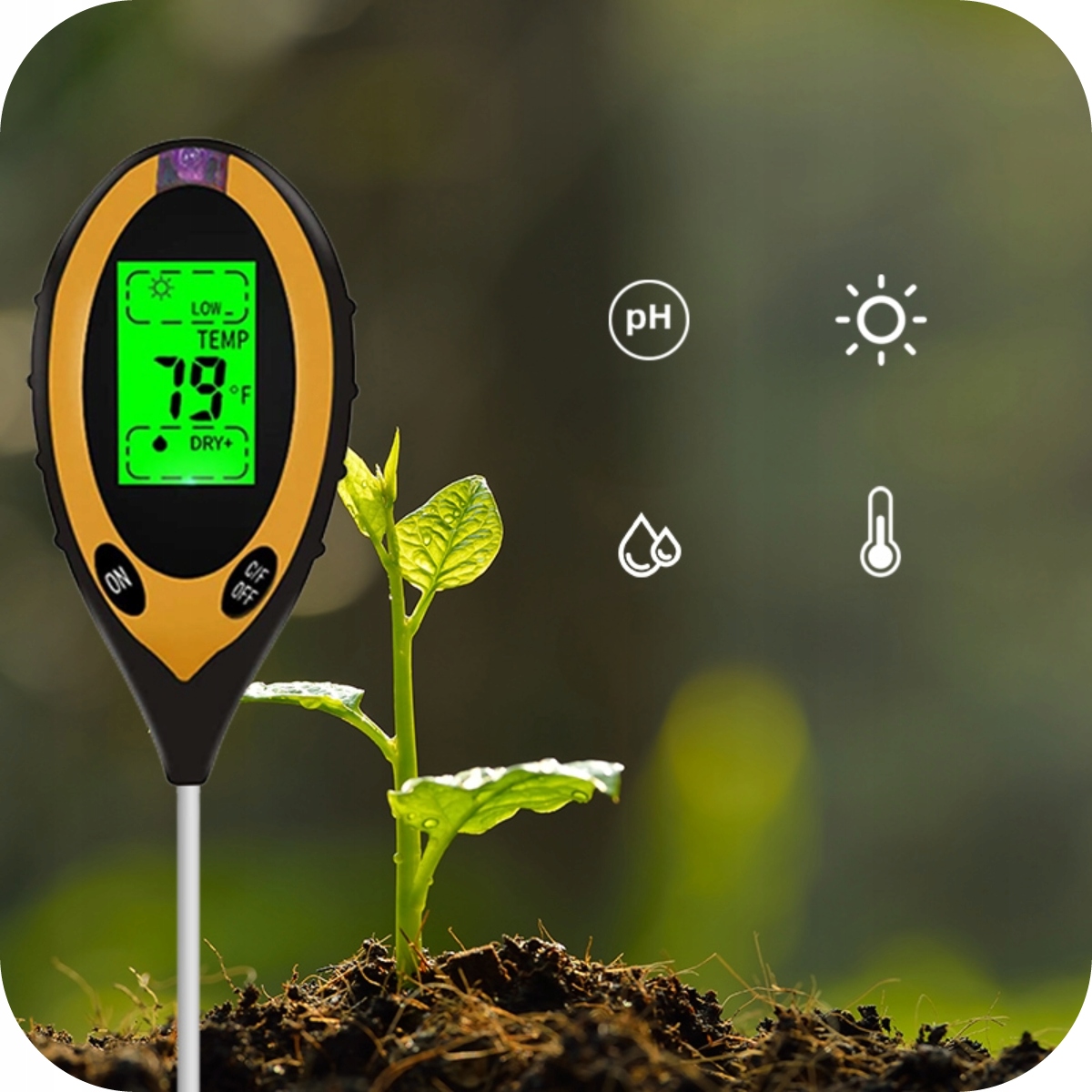 4in1 - кислотний лічильник має 4 показання вологості, рН, температури ґрунту та сонячне світло