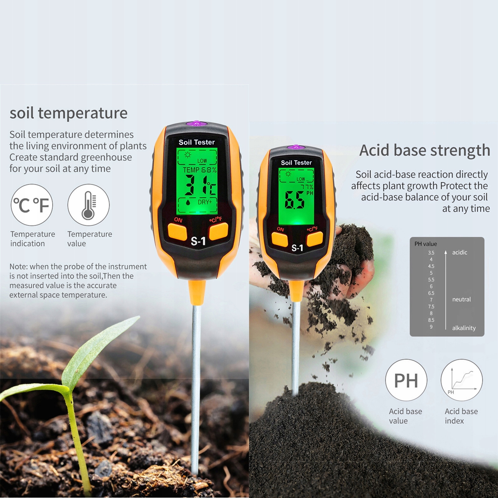 ґрунт 4 у 1. Лічильник ґрунтової кислоти 4in1 тестер pH Землі