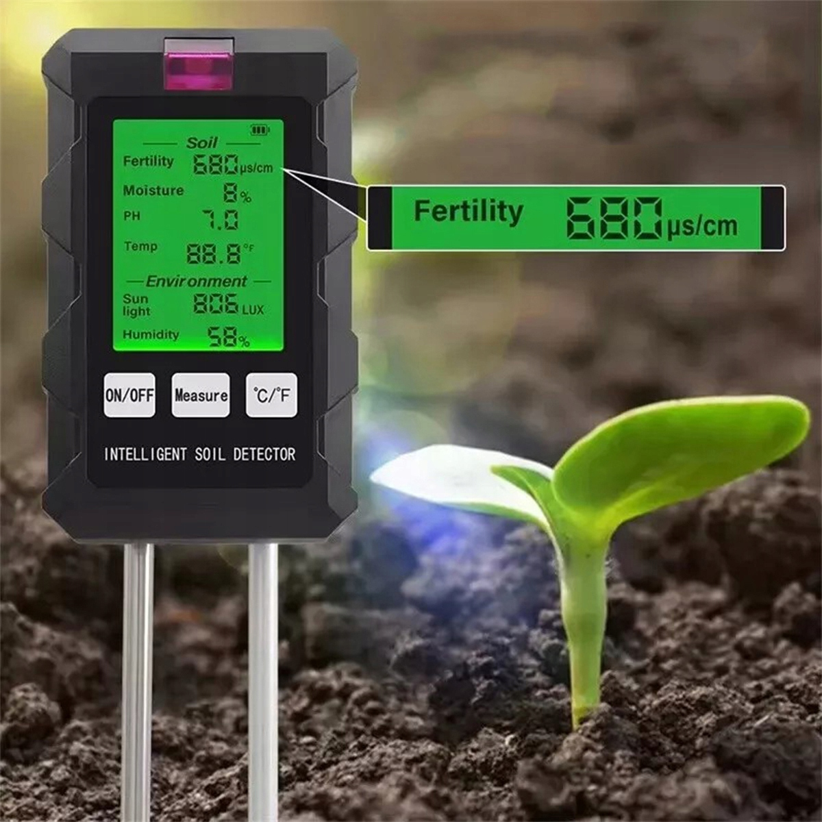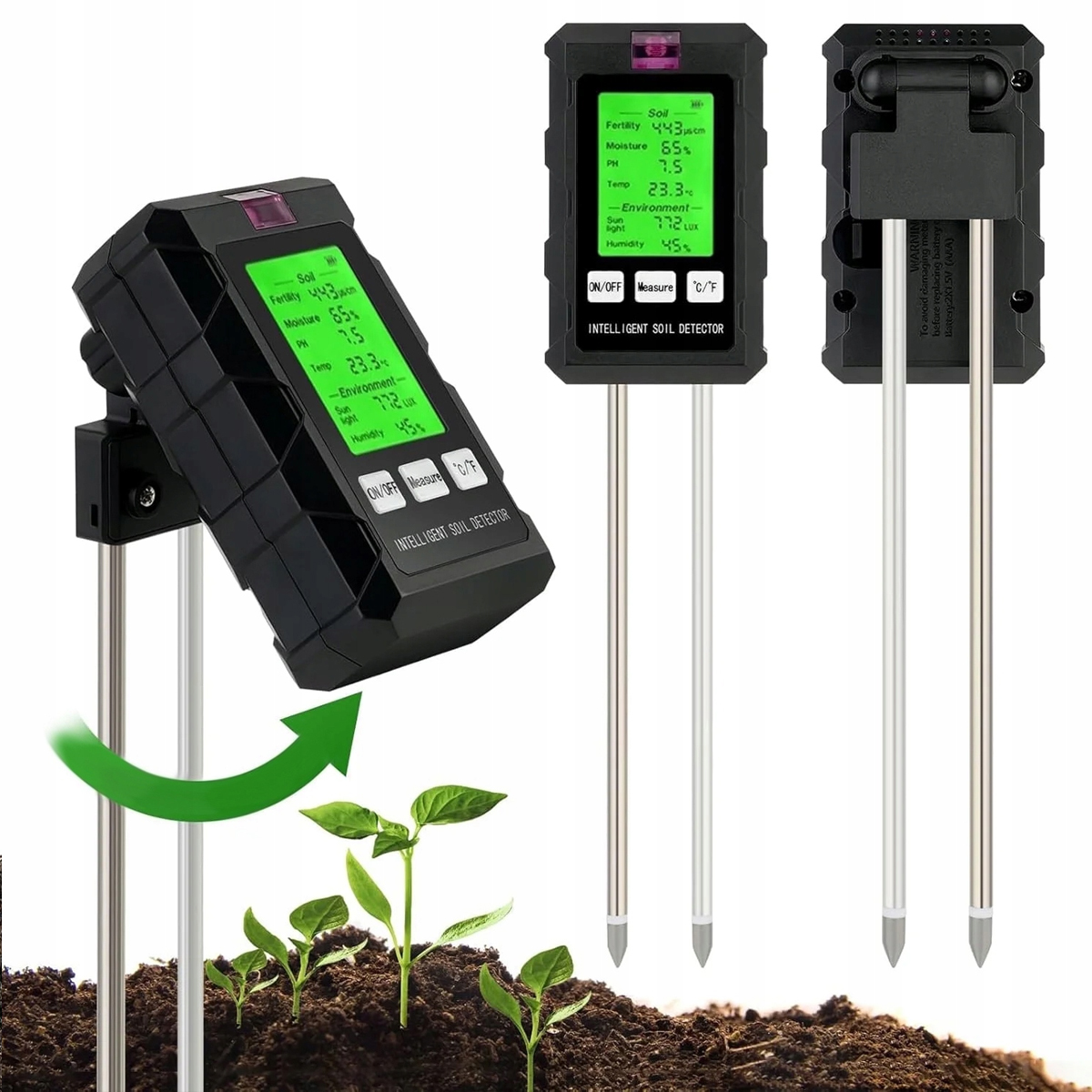 ✅Функції 6 в 1- Комплексний тестер ґрунту, який вимірює родючість, температуру, світло, рН, вологість ґрунту та вологість навколишнього середовища, все в одному пристрої для садівників.