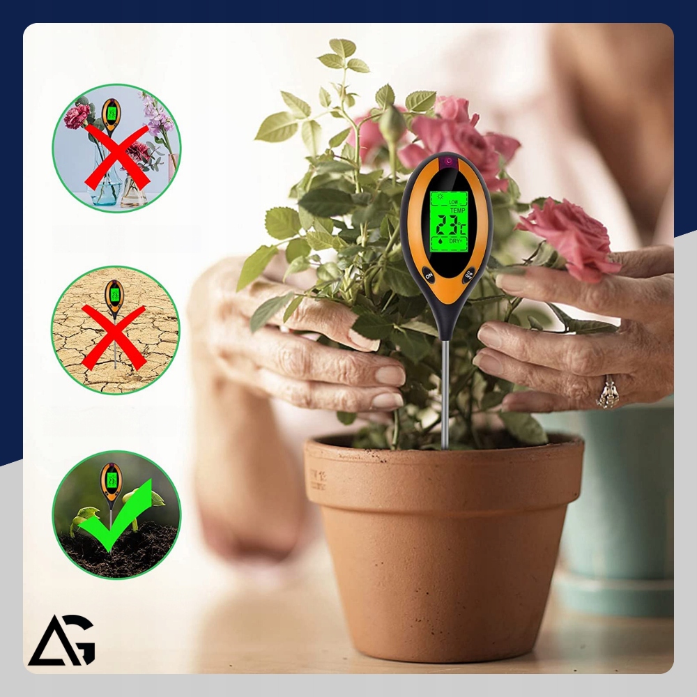 - 4 в 1 кислотному метрі з функціями вимірювання вологи ґрунту, температурою та сонячним світлом,