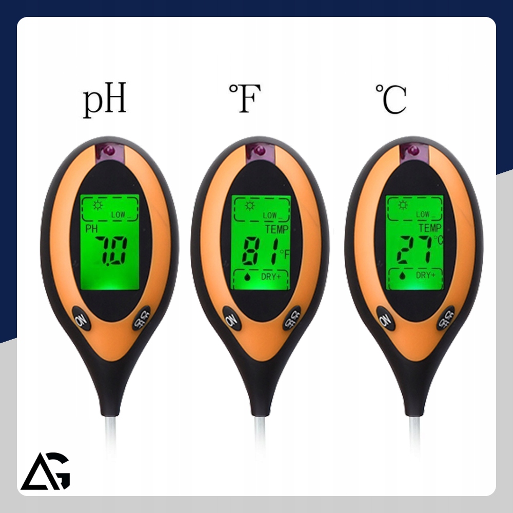 - 4 в 1 кислотному метрі з функціями вимірювання вологи ґрунту, температурою та сонячним світлом,