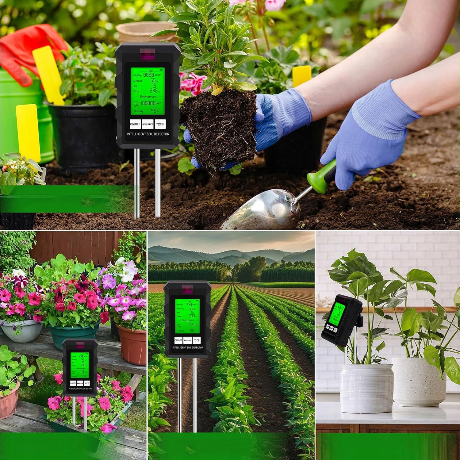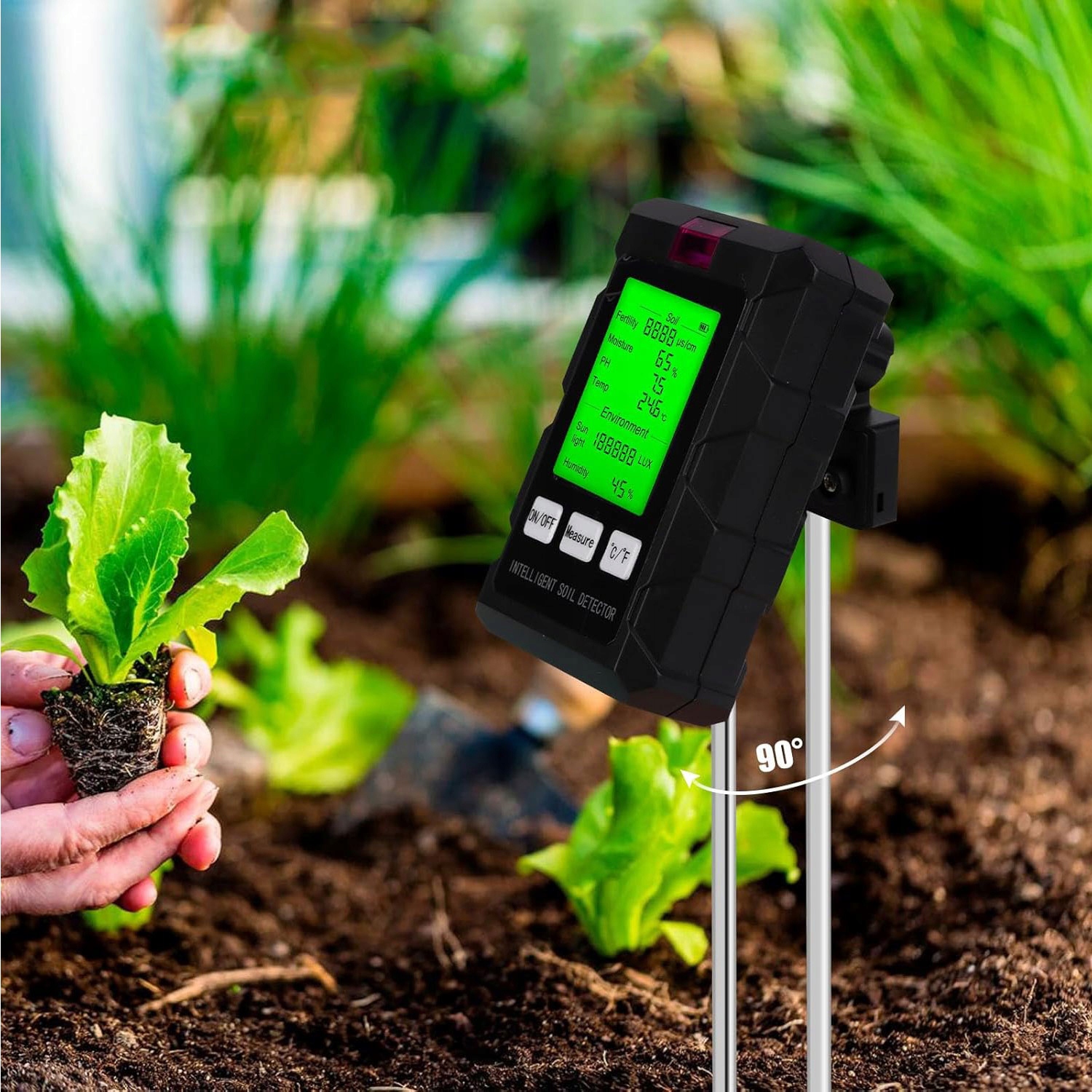 -це забезпечує точні вимірювання для точних даних. Діапазон вимірювання температури становить від -10 ° C до 90 ° C (від 14 ℉ до 194 ℉) з точністю ± 1%. Діапазон вимірювання рН становить від 3,0 до 9,0 з точністю ± 0,2. Діапазон вологості ґрунту становить від 0% до 90% з точністю ± 10%. Вимірювання світла та вологості також є дуже точним.