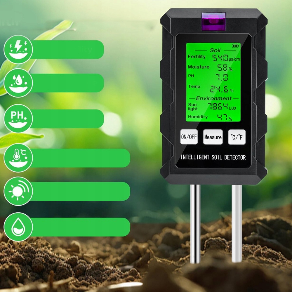 Ґрунтовий тестер 6in1 рН вологості кислотності світла температура світла