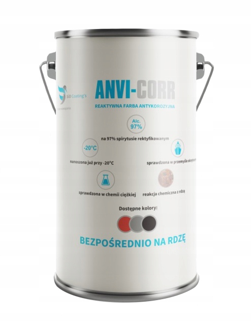Фарба ANVI-CORR - реактивна грунтовка, призначена для захисту сталевих поверхонь від корозії. Його також можна використовувати там, де ретельне очищення складно або неможливо через хімічну реакцію зі сталлю та іржею. Це рішення забезпечує тривалий захист субстрату і використовується в суднобудуванні при ремонті суден. Покриття ANVI-CORR характеризуються хорошою адгезією до основи, високою гнучкістю, хорошою твердістю та стійкістю до ударів та інших механічних пошкоджень, впливу змінних температур і періодичного впливу розчину хлориду натрію.