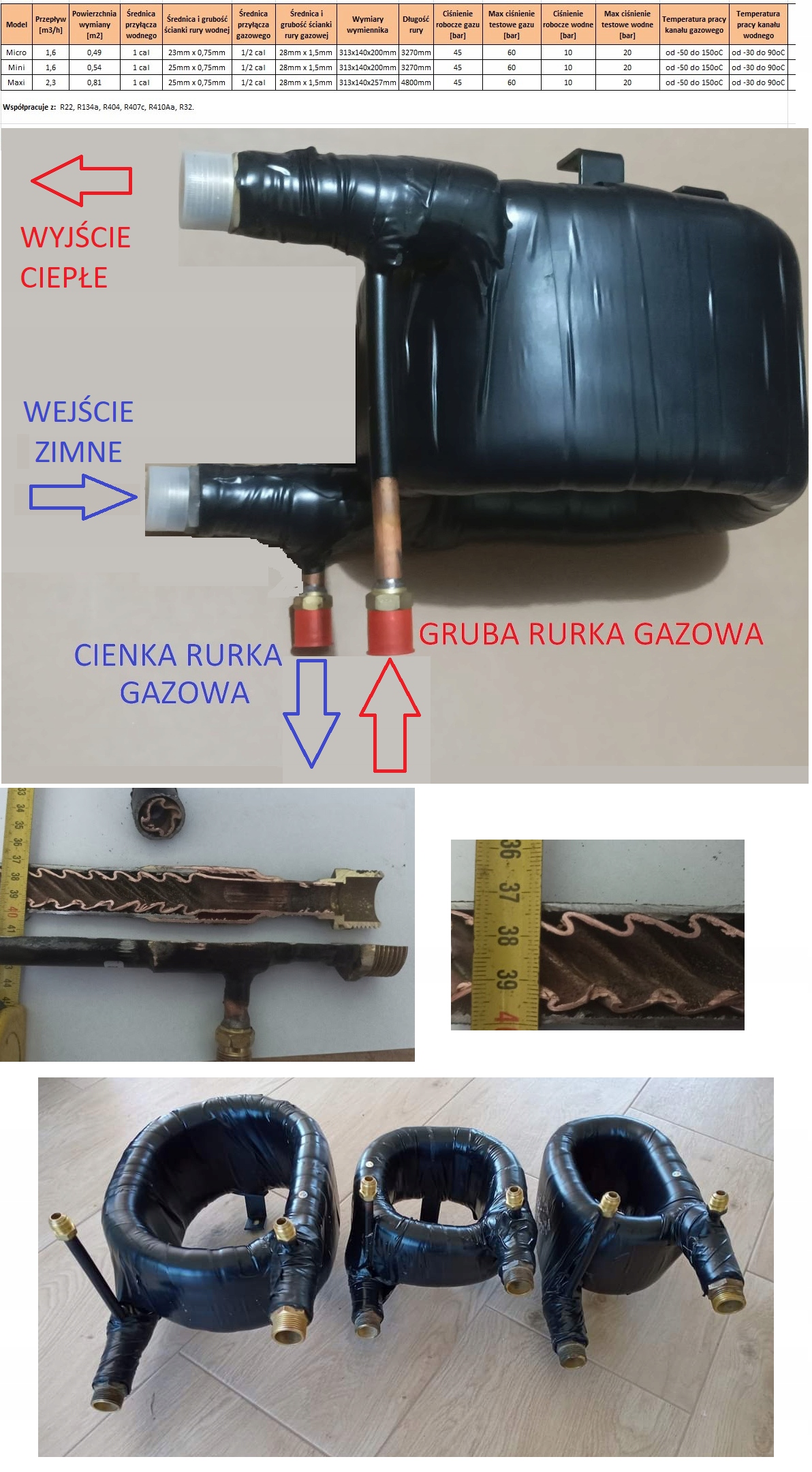 Rurowy wymiennik ciepła miedziany 13,5kW 0,81m2 3/8 1/4 1/2 1"
