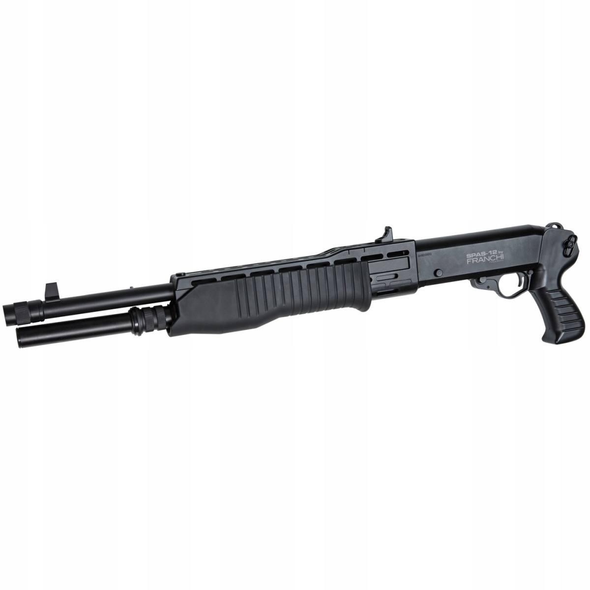 Пружинна копія гладкоствольної рушниці SPAS 12, яка використовується численними військовими у всьому світі. Зовнішній ствол і закладний трубчастий магазин, який знаходиться під стволом, виготовлені з металу. Для виготовлення корпусу, пістолетної рукоятки та ручки заряджання використовувався міцний пластик.