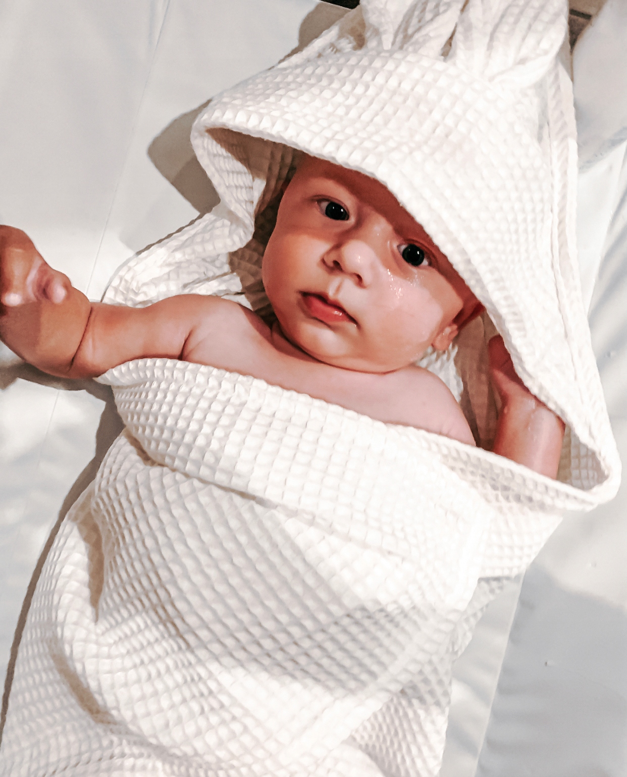 Рушник для купання - це обов'язково в будинку кожного батька. Вейф -рушник з капюшоном, захищає голову вашої дитини, м'який і поглинаючий, завдяки сертифікованій бавовні - це шкіра дитини, - це прекрасно, він ідеально працює під час щоденних ванн, а також на пляжі чи біля басейну. Він також може використовуватися як ковдра або ігровий килимок.