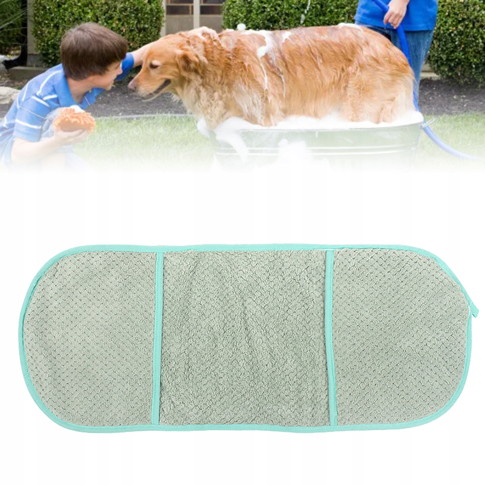 Рушник для собак 23,6 дюйма завдовжки 9,8 дюйма завширшки, суперабсорбуюча мікрофібра, кишені для рук, рушник для домашніх тварин для домашньої ванної кімнати, зоомагазин, зелений