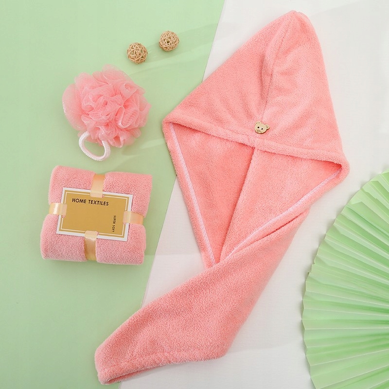 РУШНИК ДЛЯ СУШІННЯ ВОЛОССЯ Кепка ВЕДМЕДИК ЗАКРИВАННЯ Мікрофібра Рожева