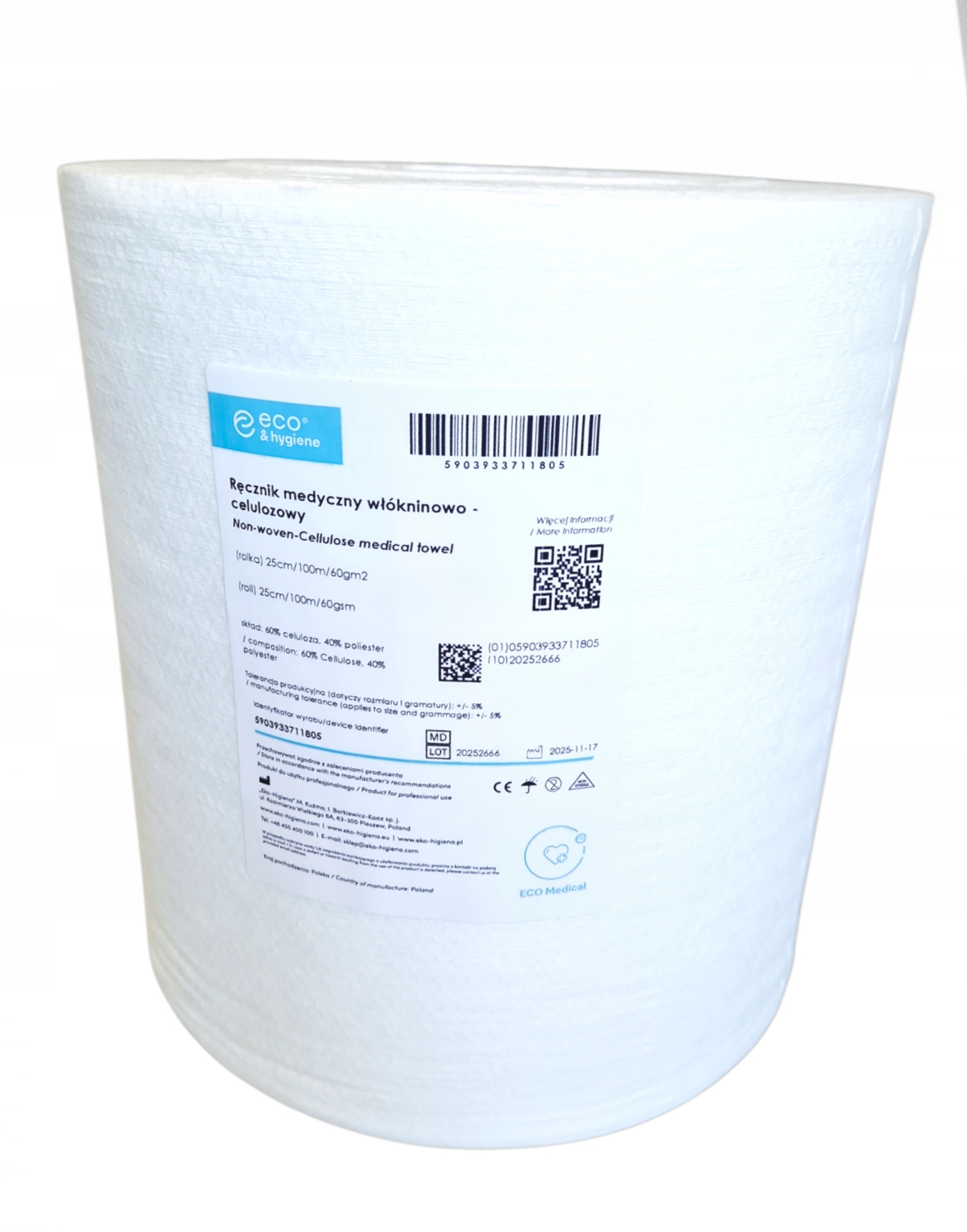 У нетканому целюлозному медичному рушнику використовується технологія, яка робить виріб надзвичайно м’яким, міцним та поглинаючим. Виглядає естетично і в той же час ефективно. Висота 25 см робить рулон практичним у використанні та в той же час економить місце.