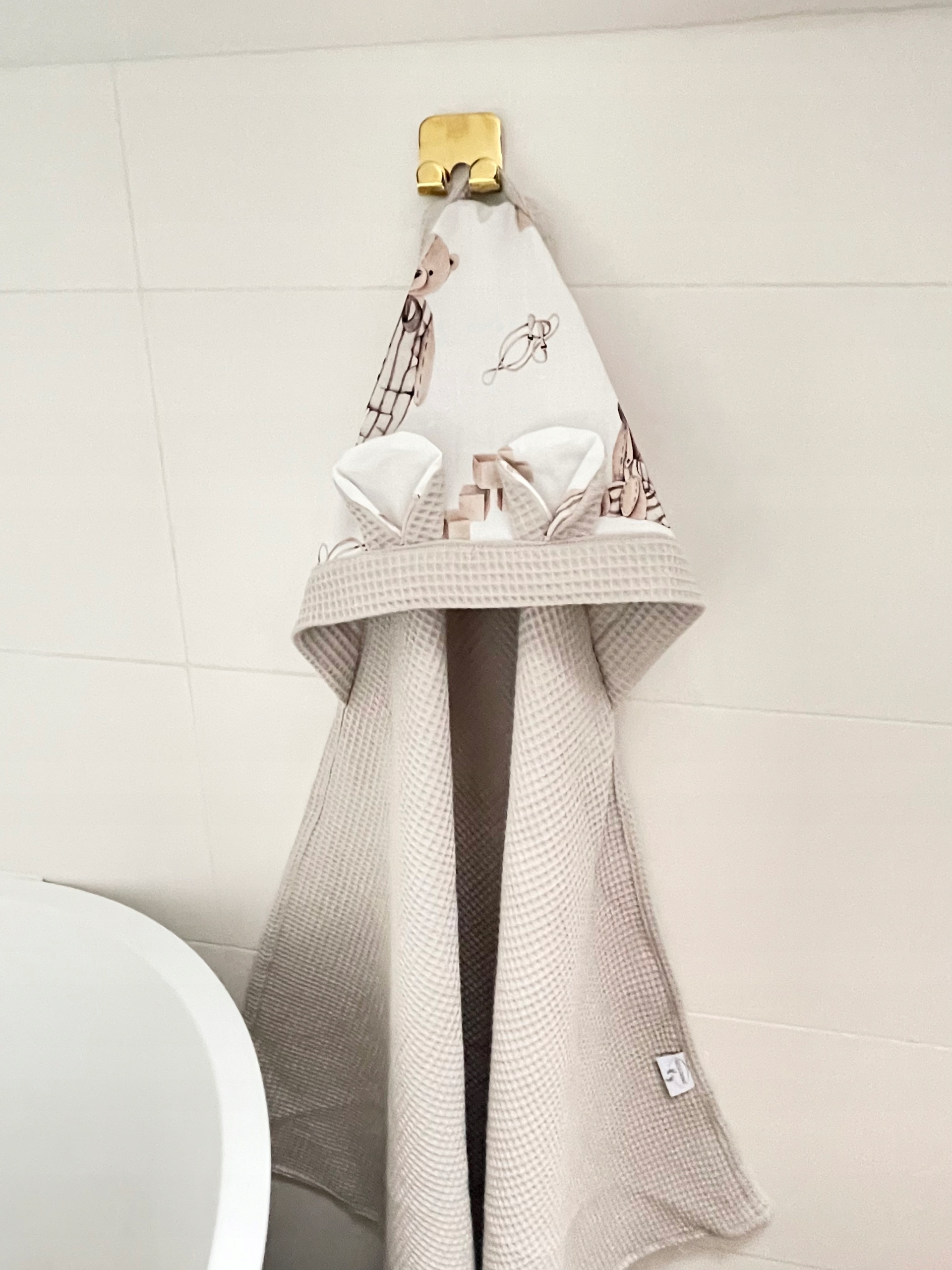Рушник з капюшоном 70/70 вафельні бежеві вушка ведмедика