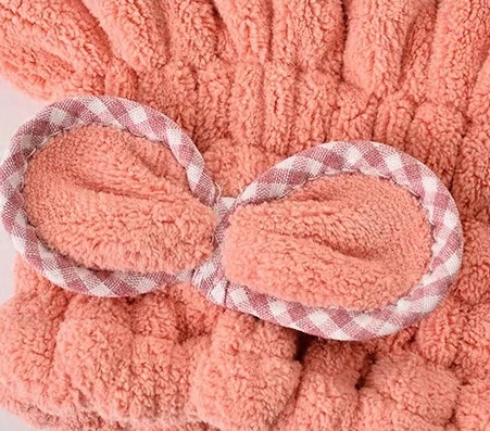 Виготовлений з м'якої щільної мікрофібри. Рушник з мікрофібри, здатний поглинати воду в 7 разів більше своєї ваги. Він вбирає в 3 рази більше води, ніж матеріал такої ж поверхні з бавовни. Має зручний шнурок, який регулюється під будь-який розмір. Прикрашений чарівним бантом.