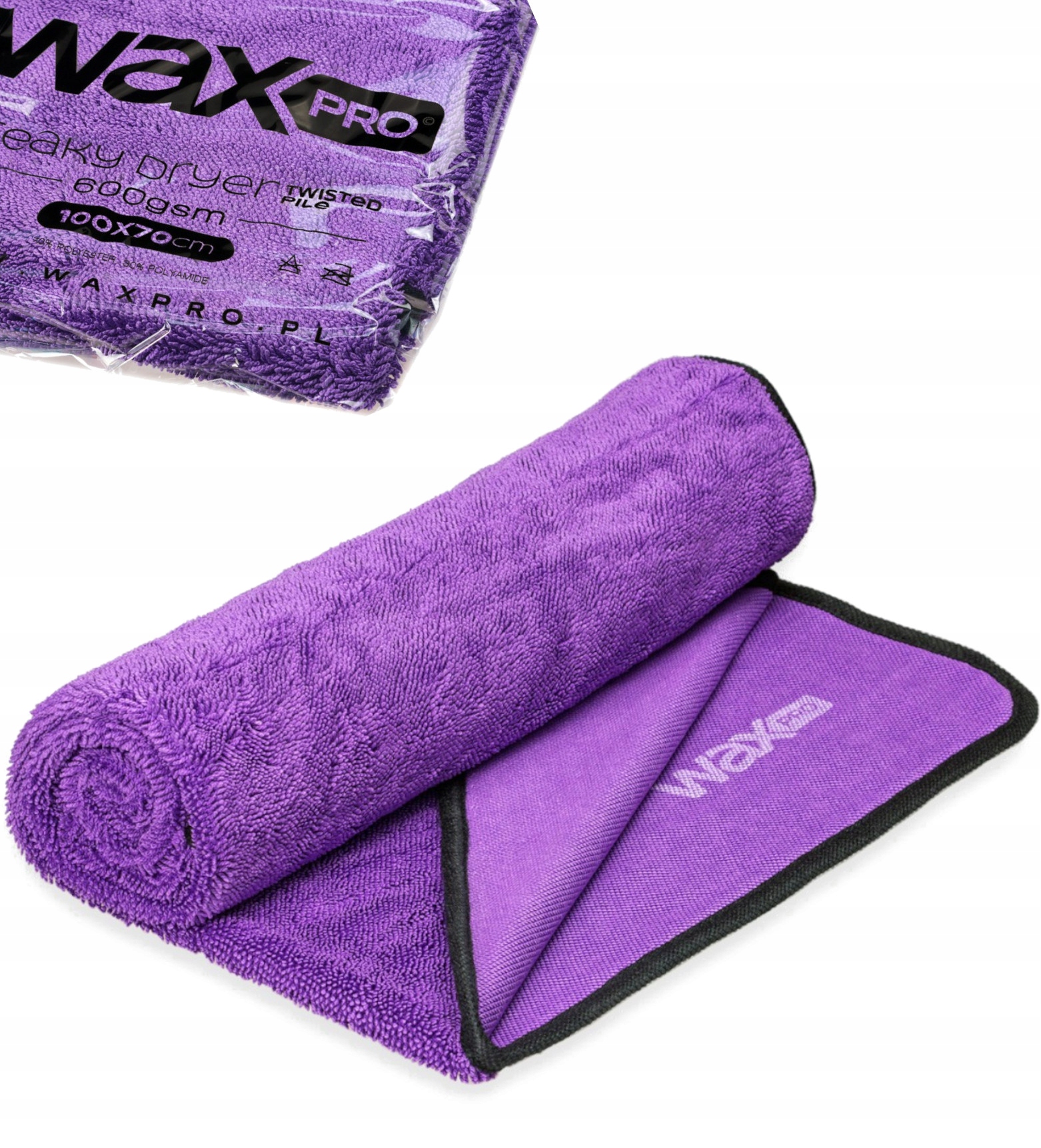 waxPRO Freaky Dryer — це новий тип рушника зі структурою мікроволокна «скручений ворс». Завдяки такому розташуванню волокон і великому розміру (до 100x70 см з щільністю 600 г/м²) рушник вбирає воду навіть краще і швидше, ніж традиційні мікроволокна. Пухнаста сторона використовується для протирання фарби, а гладка ідеально підходить для догляду за вікнами.